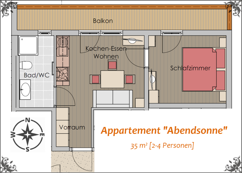 Our apartment "ABENDSONNE" is 35 m² in size.
