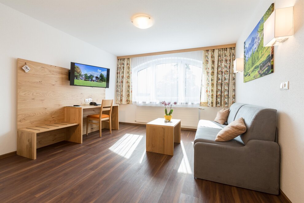 All rooms newly renovated with bath / shower / hair dryer / toilet, telephone, flat screen satellite TV with High Definition, balcony with wonderful views of the Dachstein or Schladming-Tauern View. All rooms can easily be reached by the elevator.