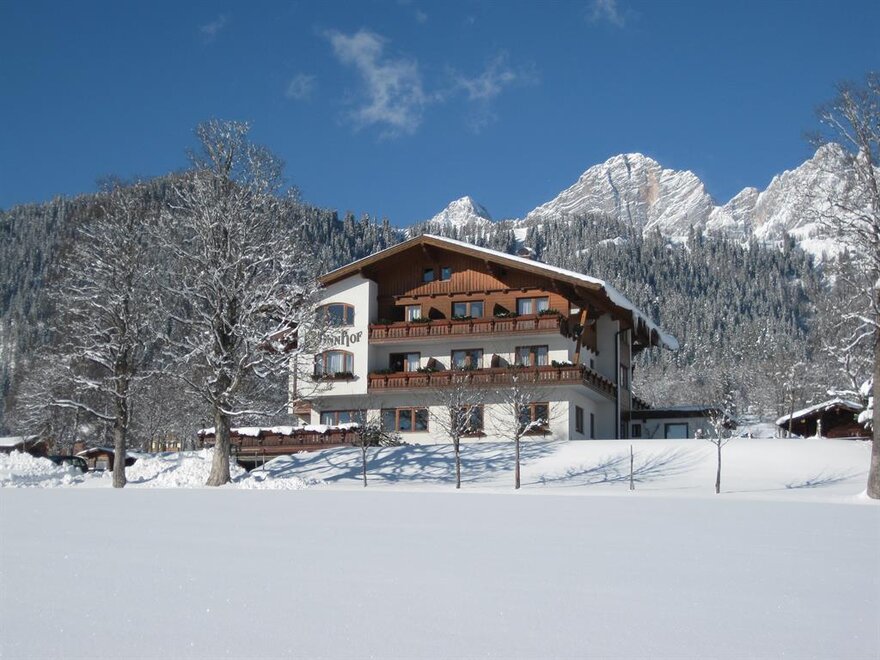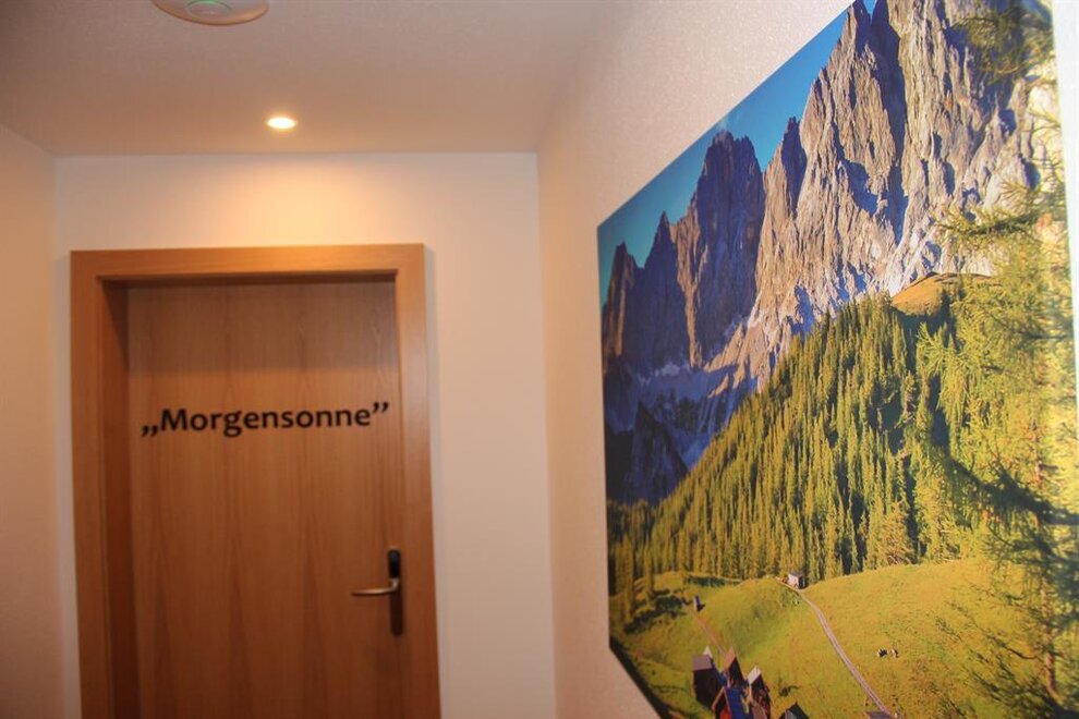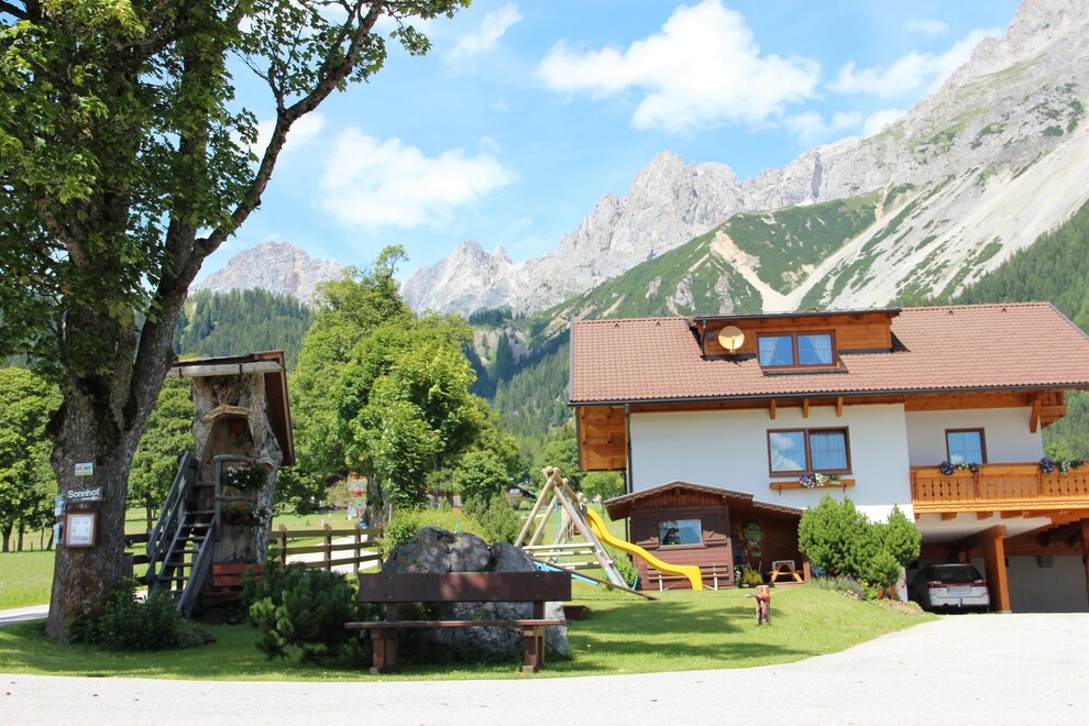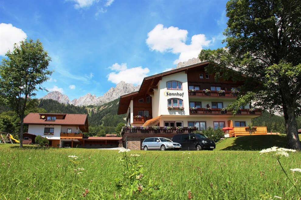 Welcome to the Sonnhof – Your family-friendly guesthouse located in the holiday region Ramsau am Dachstein near Schladming-Dachstein. Absolutely beautiful to pass enchanting holidays surrounded by wonderful meadows and unique forests. Situated at 1250m above sea level the Sonnhof unites hospitality, a relaxed atmosphere and comfort. Enjoy the clear air in the middle of the Ramsau mountain area of the Dachstein during a beautiful walk or just relax by using the comfortable deckchairs in the house own meadow. It takes around 20 minutes of walk through the breathtaking panorama of the Dachstein to reach the center of Ramsau. You choose between comfortable equipped double rooms, family rooms or Apartments. All rooms/apartments can be reached easily with the new elevator. Indulge yourself enjoying our rich breakfast buffet. At the Sonnhof you have the possibility to do sports inside or outside the house. Afterwards you can relax in the house own sauna area and revitalize your energies. We, the family Perner, are pleased to welcome you at our house, the Sonnhof.