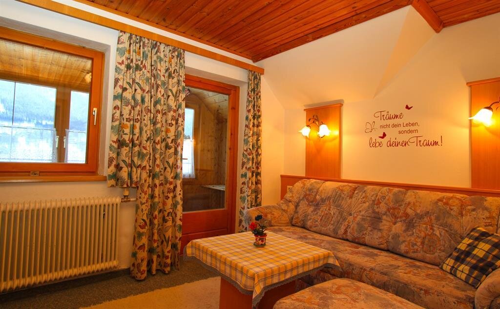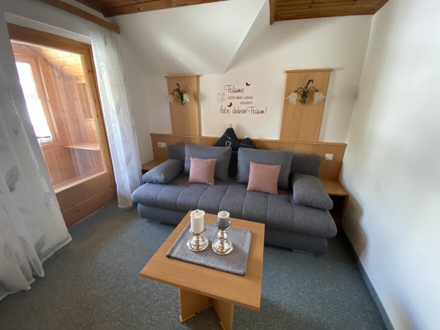 Living room, couch (convertible), with a wonderful view of the Dachstein.