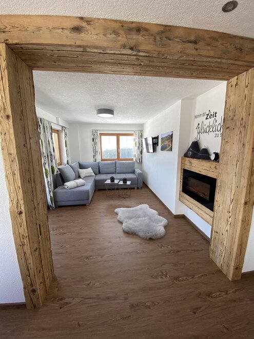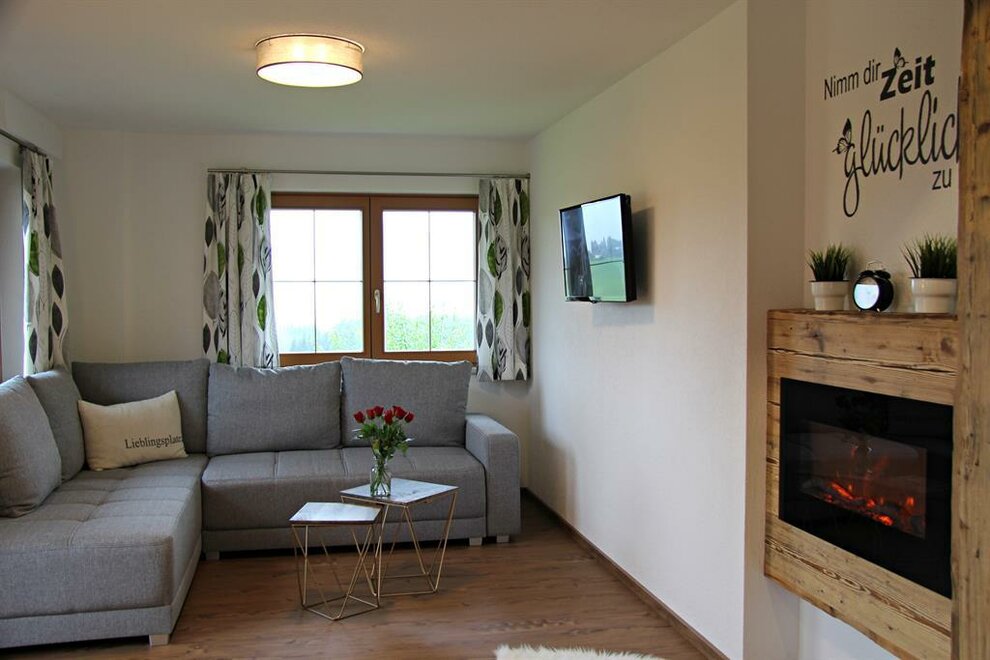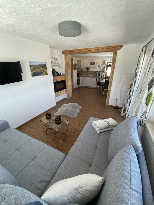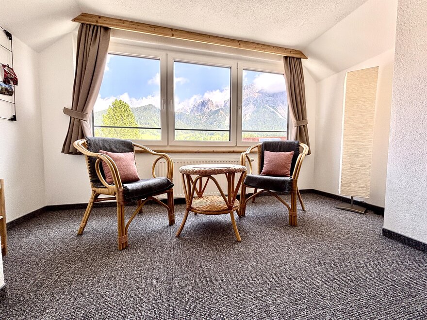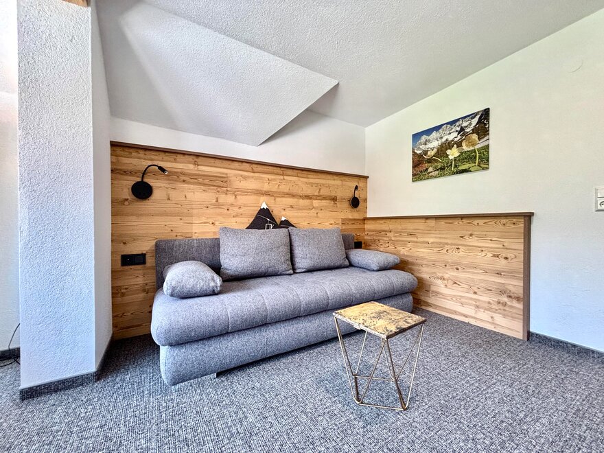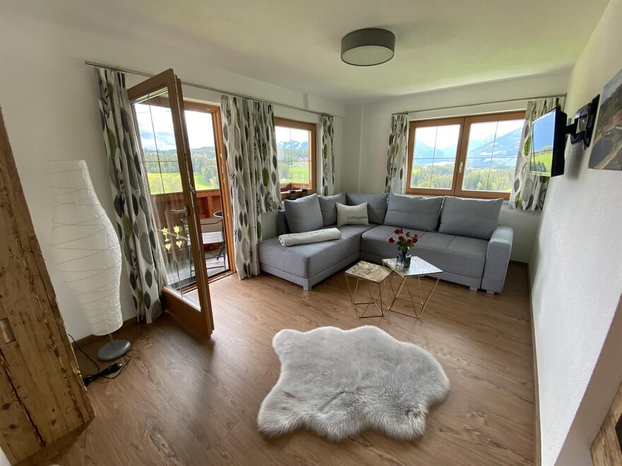 Living room, couch (extendable), with a beautiful view to the Dachstein.