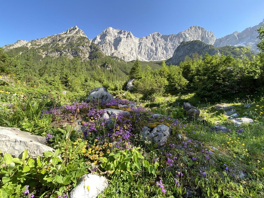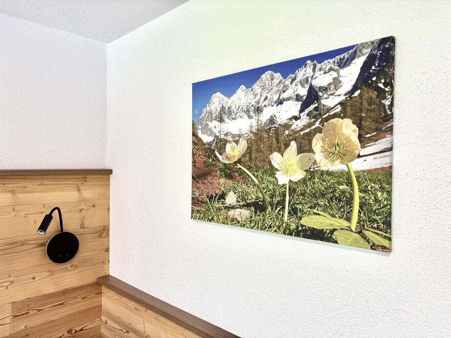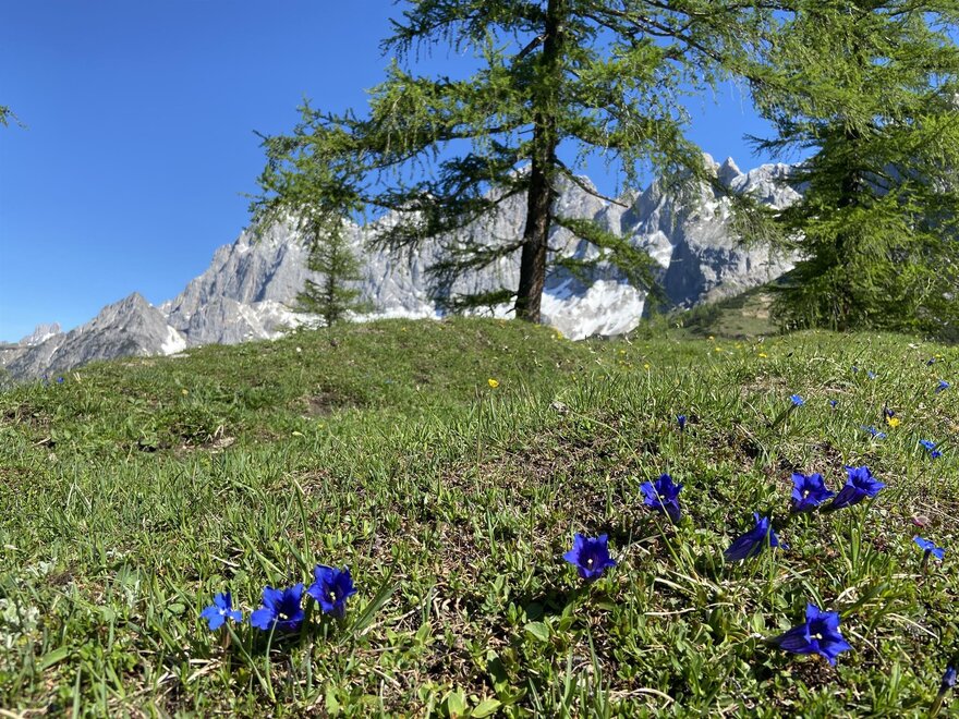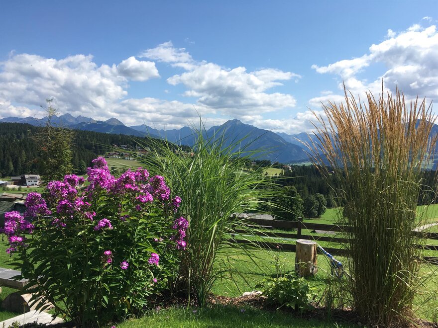 Many small natural wonders that delight the heart and soul, you will enjoy daily with us and experience, as the view to the Dachstein and Tauern massif.