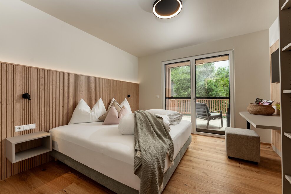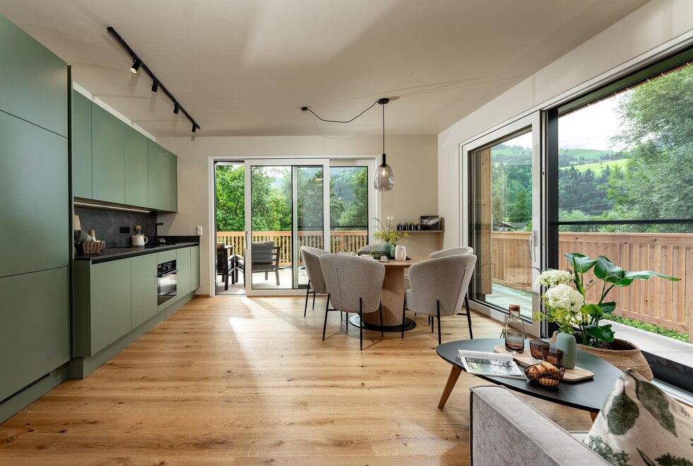 new flat/apartment Löwenzahn 67sqm + balcony 40sqm - first occupancy July 2025 - 2 bed rooms - living room with pull out couch - fully equipped kitchen - bath room - WC - internet -TV - safe - own parking space and access