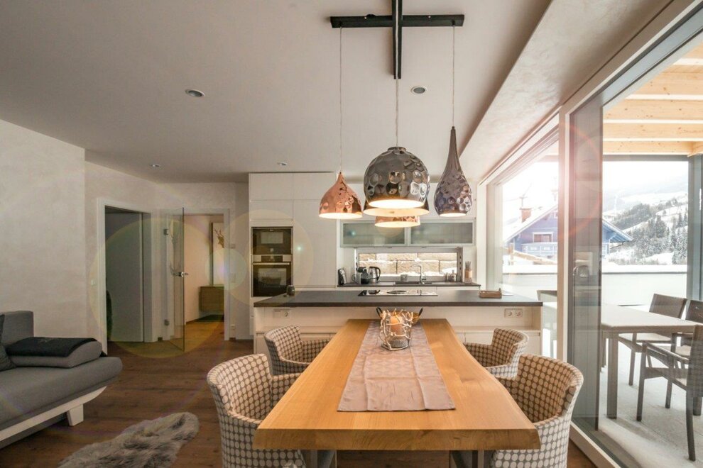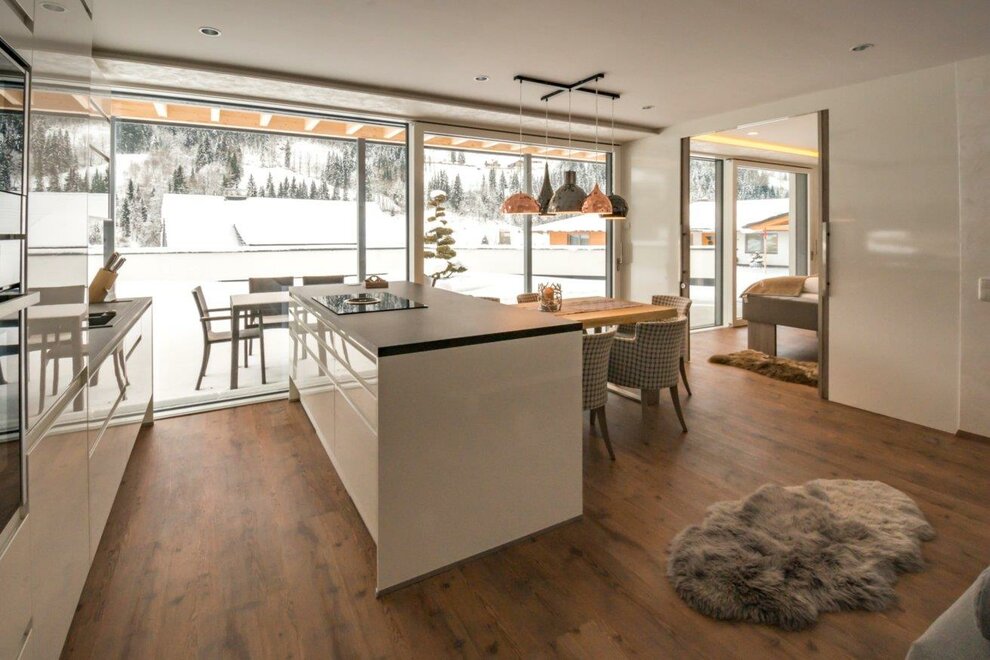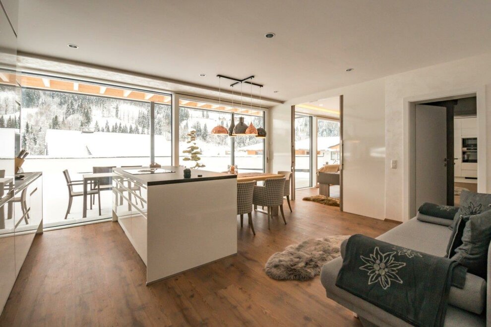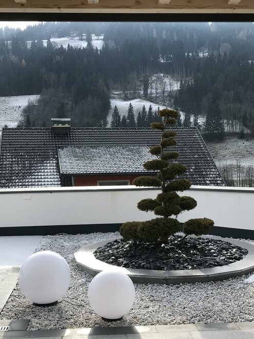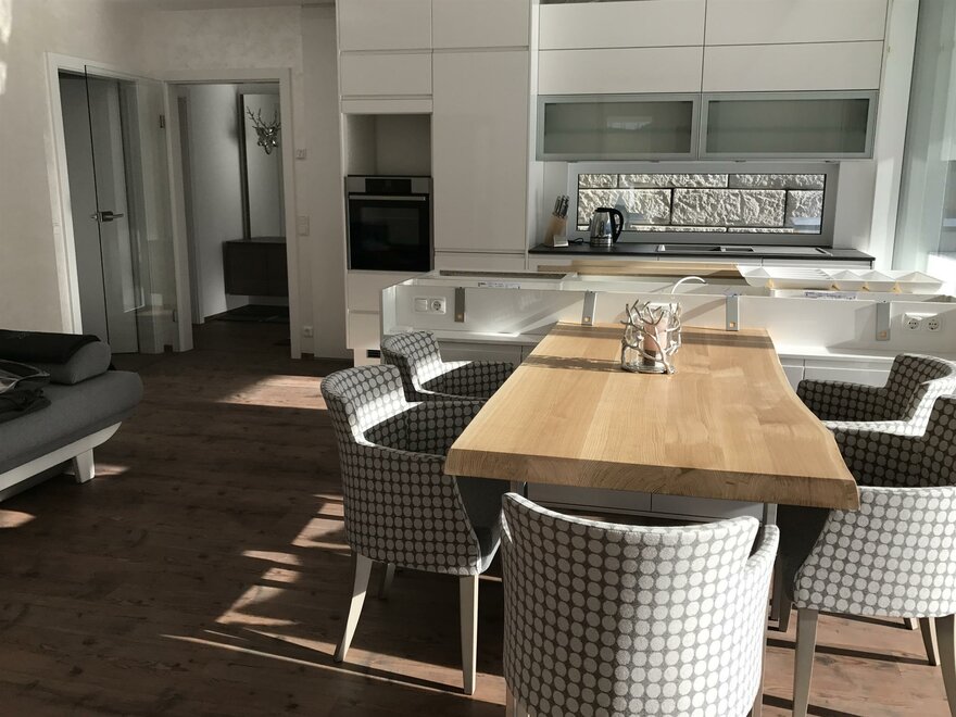 Our newly built apartment in Schladming leaves nothing to be desired. When designing the rooms, we placed special emphasis on an atmosphere of well-being - just as if we were living here ourselves. Modern and yet cosy is our motto. 2 bedrooms with double bed and bath and, extra toilet, anteroom and storage room are combined with a large living room with a separate kitchen area with all amenities. An own large terrace invites you to relax.