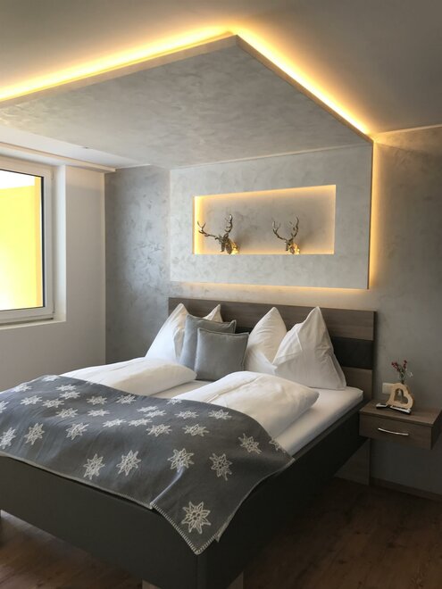 Our house Sun Chalet is comfortably furnished in country house style. A large fully equipped kitchen with stove, oven, microwave, 2x refrigerator, coffee machine, dishwasher and much more. The central point is the living room with the large table for cosy game evenings, raclette, or just a cosy get-together. Three bedrooms are located on the first floor and one bedroom on the ground floor. 2 bathrooms and 2 toilets extra are available. A ski cellar and a large outdoor sauna with a great mountain view are waiting for you. The large terrace invites you to have breakfast outside or maybe a yoga class in the morning.