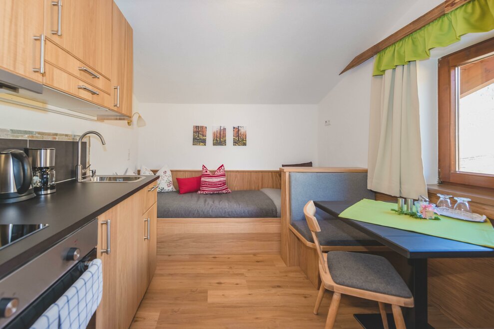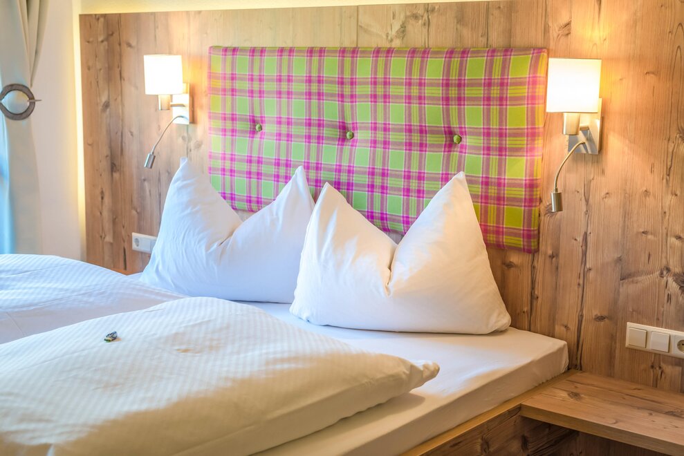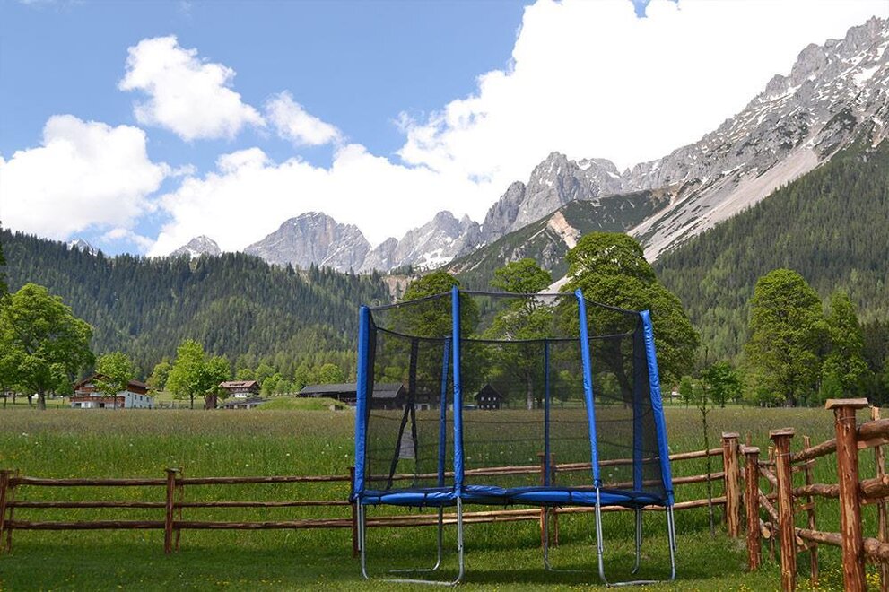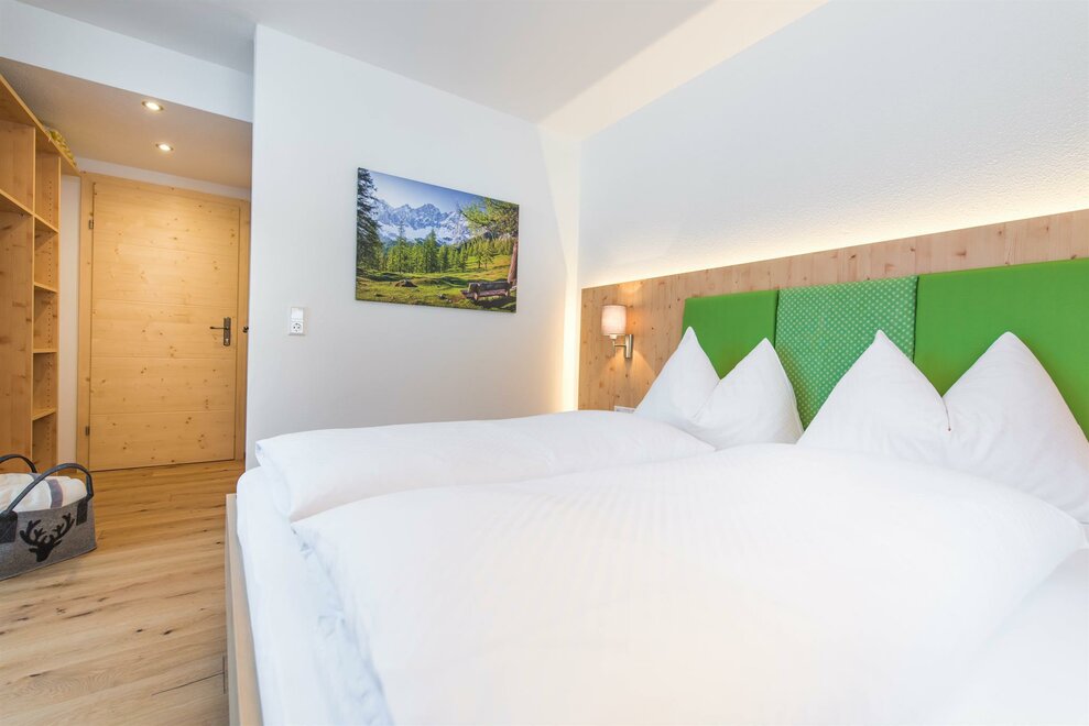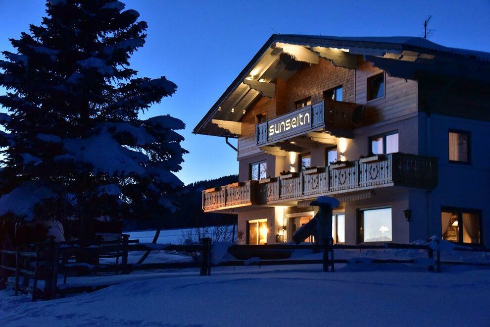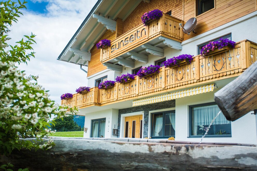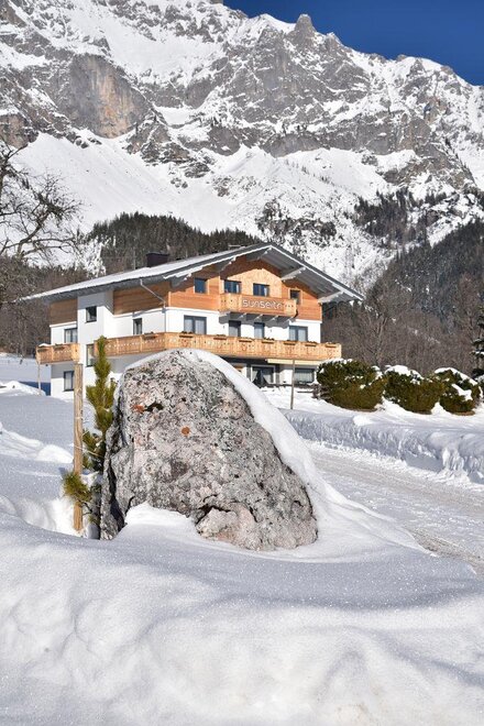 Enjoy the most beautiful days of the year in our family run bed and breakfast, Pension Sunseitn, located in quiet yet central position in Ramsau, with great views to the Dachstein mountains. Our bed and breakfast is in the middle of the Ramsau am Dachstein plateau, close to numerous restaurants, shops and places of excursions for the whole family. Wonderful walking paths and well-prepared cross-country trails go past the Pension Sunseitn. The ski bus taking you to “Kali’s Winter World”, the Ramsau-Rittisberg ski area, and to the ski resort amadé stops right in front of the Pension Sunseitn. The Ramsau cross-country stadium, which is even floodlit in the evenings, can be reached within a few minutes. In summer, you reach the leisure park Ramsau Beach within only ten minutes by foot, offering leisure facilities such as archery, high ropes course, trampoline, beach volleyball and a swimming lake. On the Rittisberg, there is a fairytale trail for families with children and further paths for great walks. The Pension Sunseitn offers caringly furnished and comfortable triple, double and single rooms as well as large family rooms. All our rooms are welcoming and designed in a rustic style, offering an individual and homely atmosphere. From the rooms, which all have a size of between 25 and 35 sqm, you have gorgeous views to the Dachstein mountains or the Tauern. The free of charge WLAN is accessible in the rooms. Further amenities of the rooms are SAT-TV and a large, sunny balcony with a cosy sitting area, where you can end the day cosily with your family. In the morning, our delicious and rich buffet breakfast awaits you, with fresh produce from the Irxnerhof farm, such as home-made butter, freshly baked bread, home-made jams and honey. In the evening, you are welcome to enjoy our guest lounge for a sociable get-together with the whole family.We are happy to provide cot, high chair, or padded mat for the changing table for your children. Your ski and sports equipment as well as bicycles can be kept safely and dry in our storage room. In our large garden with a sandpit, your kids can play to their heart’s content, while you may relax and enjoy a cool drink on the sun terrace or the lawn for sunbathing. Be inspired by the impressive mountain backdrop of the Dachstein and the Schladming Tauern. At the Pension Sunseitn, we offer fun and games for the whole family, such as board games, billiard, trampoline and tabletop football. In winter, the gorgeous snowy landscape will enchant you during a romantic sleigh ride or a racy toboggan ride with your family. In summer, you will be stoked by Ramsau am Dachstein’s manifold hiking possibilities. We look forward to welcoming you as our guests and to looking after you in the bed and breakfast Pension Sunseitn in beautiful Ramsau am Dachstein! Your Kirchgasser Family