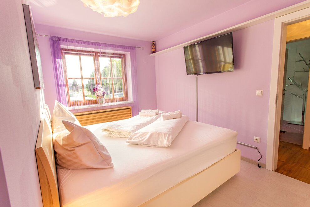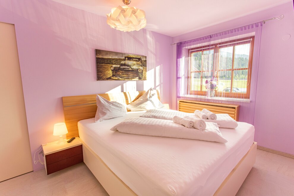 The approximately 80m² ground floor apartment can accommodate up to four adults and two children (under 14 years of age). Two bedrooms, a fully equipped kitchen-diner, a stylish bathroom, a separate toilet, and a cozy living area with a pull-out couch, flat-screen TV, and a wood-burning stove ensure a relaxing vacation. A large terrace with a view of the mountains invites you to linger. Wi-Fi and a summer card are included!