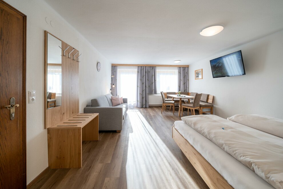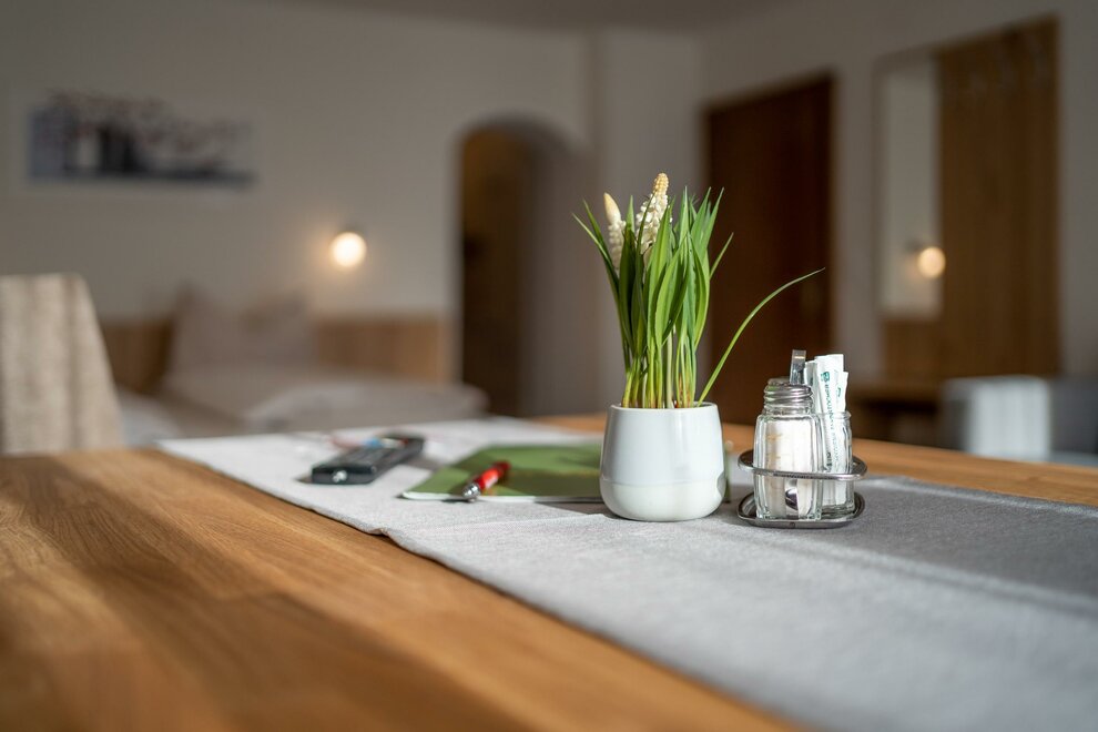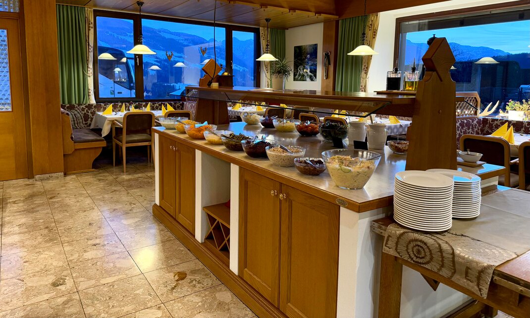 In the morning, we offer a hearty, rich buffet breakfast with products from our own farm. In the evening, you can enjoy regional specialties choosing your preferred set menu. By request we also serve vegetarian dishes. Furthermore, you might treat yourself to a drink in one of the cosy lounges “Kachelofenstube” and “Zirbenstube”, in the winter garden or on the sunny terrace. Relax in our sauna area with a Finnish sauna, a steam bath, an infrared cabin, and a solarium.