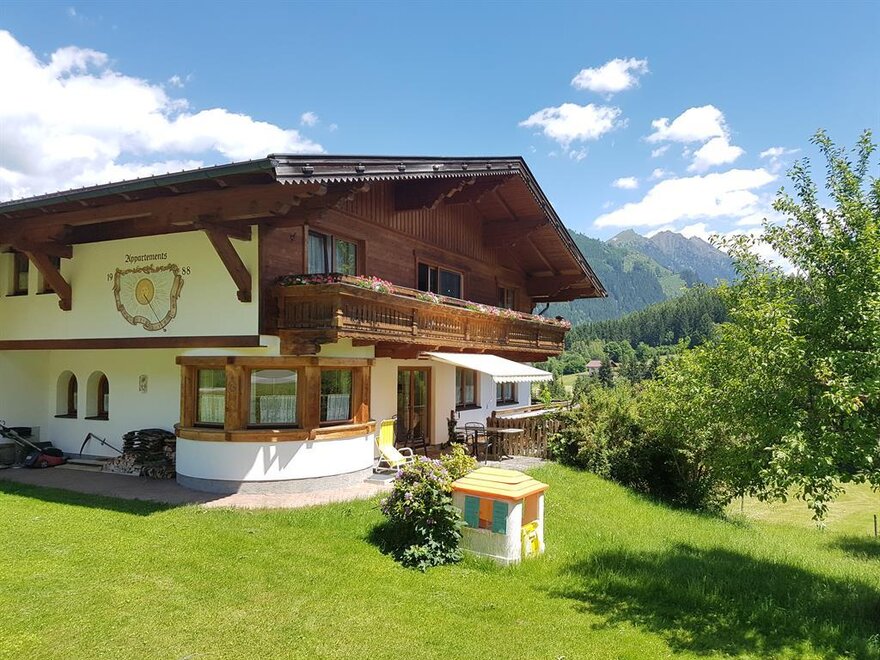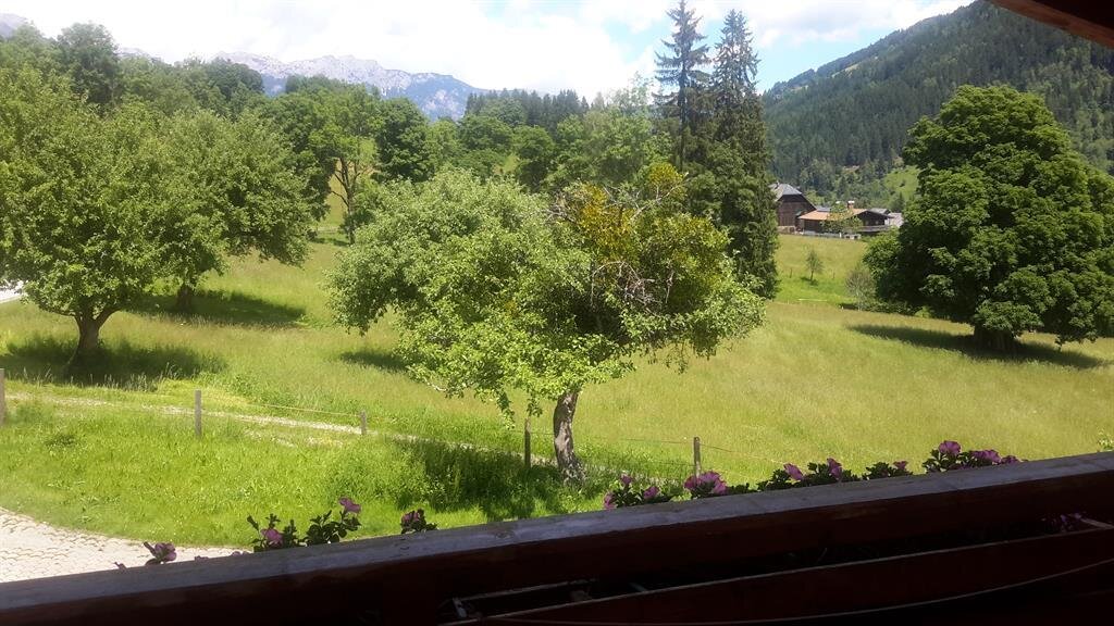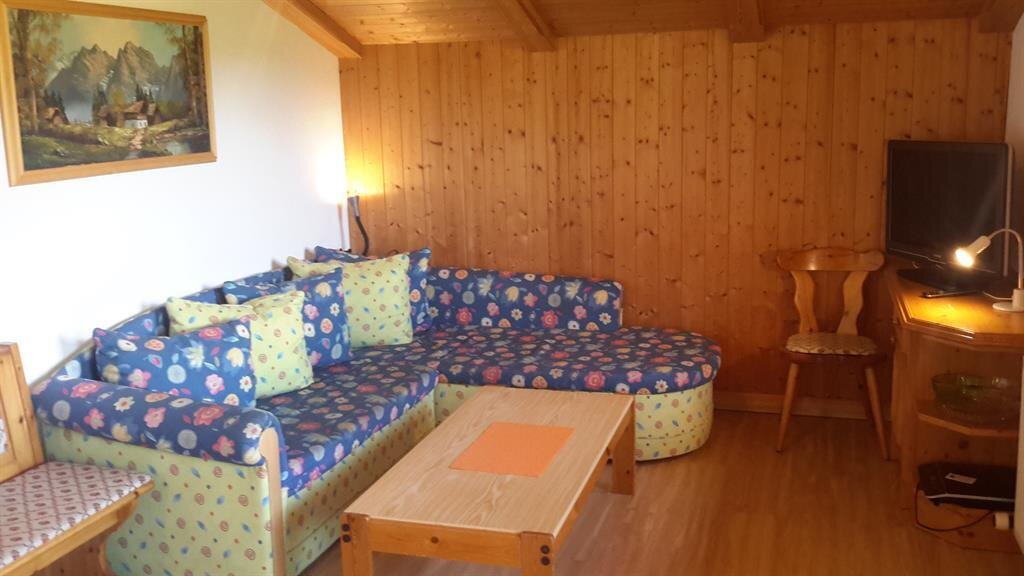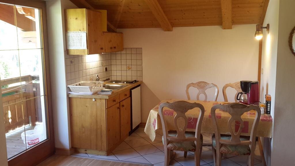 Sunny, quiet setting, next to the cross-country ski trail and stop for the ski bus. Alpine-ski to our front door. Cozily furnished APT with Cable-TV and free WiFi, each bedrm. with shwr./WC, adj. rm., large balcony or terrace, grill equip., 100m from organic farm, shared playground.
