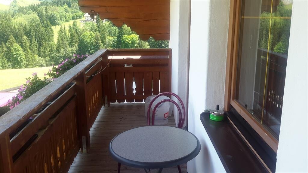 The cozy apartment Herbst with a large balcony and a magnificent view of the Dachstein massif is approximately 40 m² in size, with a separate bedroom and bathroom / WC, and is suitable for a maximum of 3 people. The living area features a comfortable sofa, a kitchenette, and a large dining table. For evening entertainment, cable TV and free Wi-Fi are available. Additionally, the sauna located in the building is also available for relaxation.