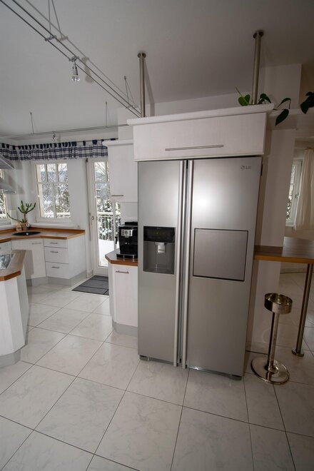gas stove, TV, toaster, oven, internet connection available, separate bedroom/s: 5, Größe m²: 350, microwave, radio, closet, garden furniture, garden, pets permitted on request, freezer compartment, balcony, furniture suite, anteroom, walk-in closet, kitchen, refrigerator, dishes available, terrace, luxurious furnishing, dishwasher, towels available, sauna, heater, satellite TV, dining room, separate living room, hairdryer, coffeemaker