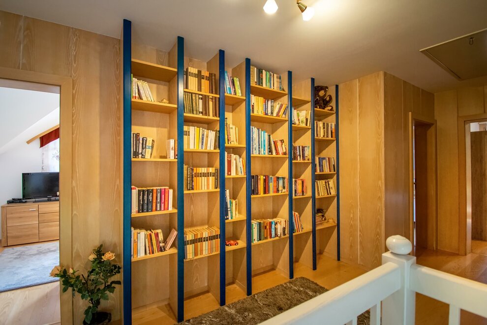 Upstairs there are 3 bedrooms, library a toilet and bathroom. All rooms have their own balcony and TV