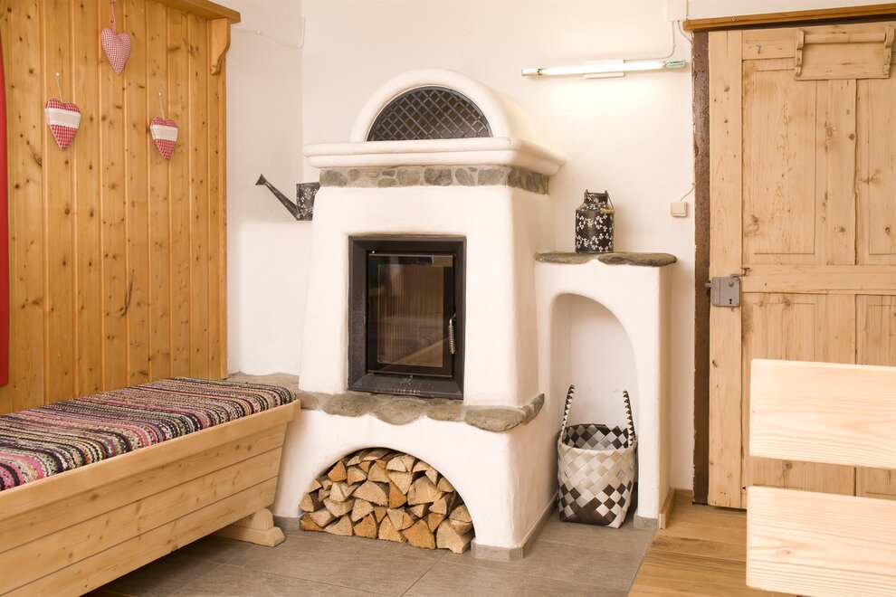 The cabin has three sleeping chambers for 6 people. A large living kitchen with a tiled stove,