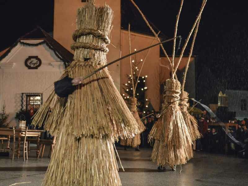 Every year in early december the traditional Krampus spectacle will be performed at Öblarns market place. Children needn´t got to be scary of birch strike, like in former times, because our ethnic spectacle don´t convey cruelty. Viewers will get in touch to old tradition 'without' fear. Mystic figures like 'Schab' (man wrapped in straw, snapping their whips in cycle beat), 'Graßteufel' (wood-demon with brushwood costume) and 'Flechtenmann' (a wild man draped all over with long plat of trees) will be effecting a scary-beautiful atmosphere to the audiance. The quarrel between summer and winter will also be performed.