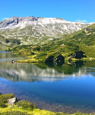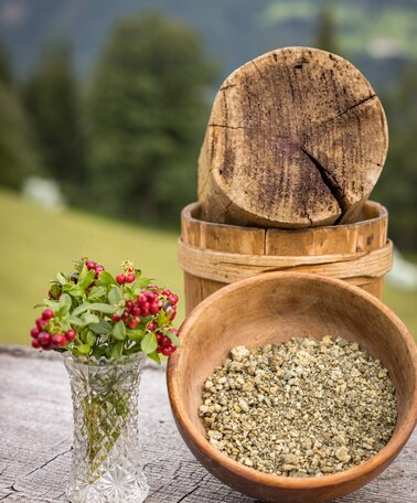 Lush green mountain meadows. The gentle clanging of cowbells. A pretty alpine dairymaid in traditional costume serving fresh buttermilk and cheese sandwiches in front of a rustic wooden hut. This is probably how you imagine life in the mountains. However, that life often involves some hardships and a lot of hard work. At least, that was most definitely the case several hundreds of years ago when alpine farming began in the Ennstal region. You need to realize that the dairywomen and cowherds were not on a "summer vacation" in the mountains. Rather, the agricultural use of the higher grassy regions – known as “Almen” - arose out of necessity. "The agricultural crops in the valleys were stored at the farm and used up in the winter months. So, use of alpine pastures provided relief in the summer," explains Viktoria Brandner from Kleinsölk. She knows the life of an Sennerin all too well, as she spends her summers at the Köckhütte on the Tuchmoaralm above Kleinsölk. For her, the authentic alpine lifestyle also includes processing the milk they obtain. So, like the dairymaids of old, Viktoria works with a copper kettle over an open fire to produce delicious cheese from the skimmed milk. She also makes sour-cream butter for hungry hikers. "The products are, of course, extremely high quality, as the cows up here only munch on fresh grass and a variety of herbs," says Viktoria, as she presses the fresh butter into wooden butter molds to give it its characteristic shape and a flower pattern.