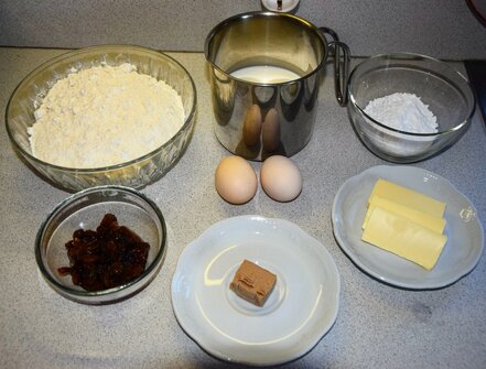 • ½ cube of yeast, 250 ml milk,
