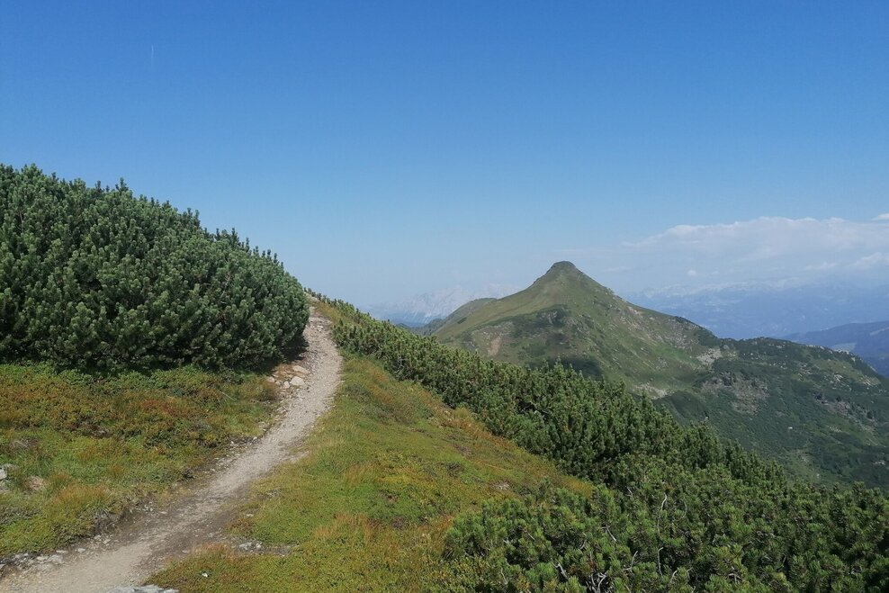 ONE IS NONE. The two for it everything! Up the Almsteig, across the long cirque past the picturesque lake and further uphill to Karlspitz. Here a short break before the mountain pines sweeten the way towards Schreinl. Grandiose views without end.