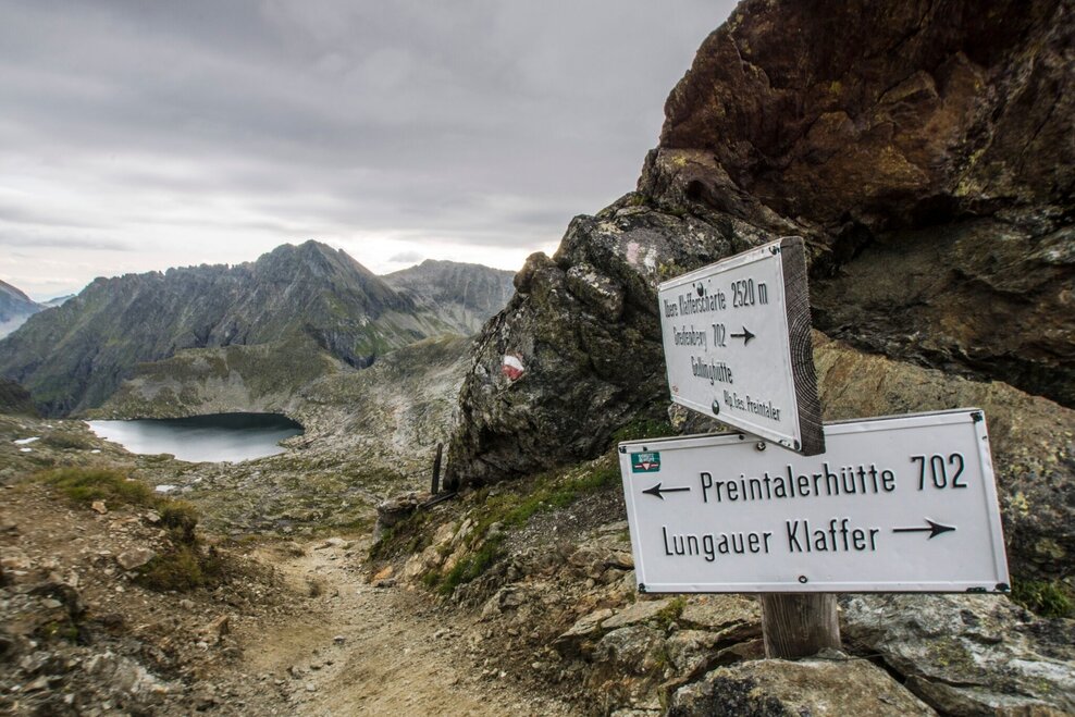 Changes in weather patterns, quick falls in temperature, thunderstorms, wind, fog and snow are some of the dangers that can be encountered on a hiking tour. Hosts of alpine huts and mountain refuges have a lot of experience in the mountains and can give good advice about weather and the trails. Poor equipment, overestimation of one's own capabilities, carelessness, poor personal constitution and/or wrong judgement can lead to critical situations. In case of thunderstorms: avoid summits, ridges and steel ropes.