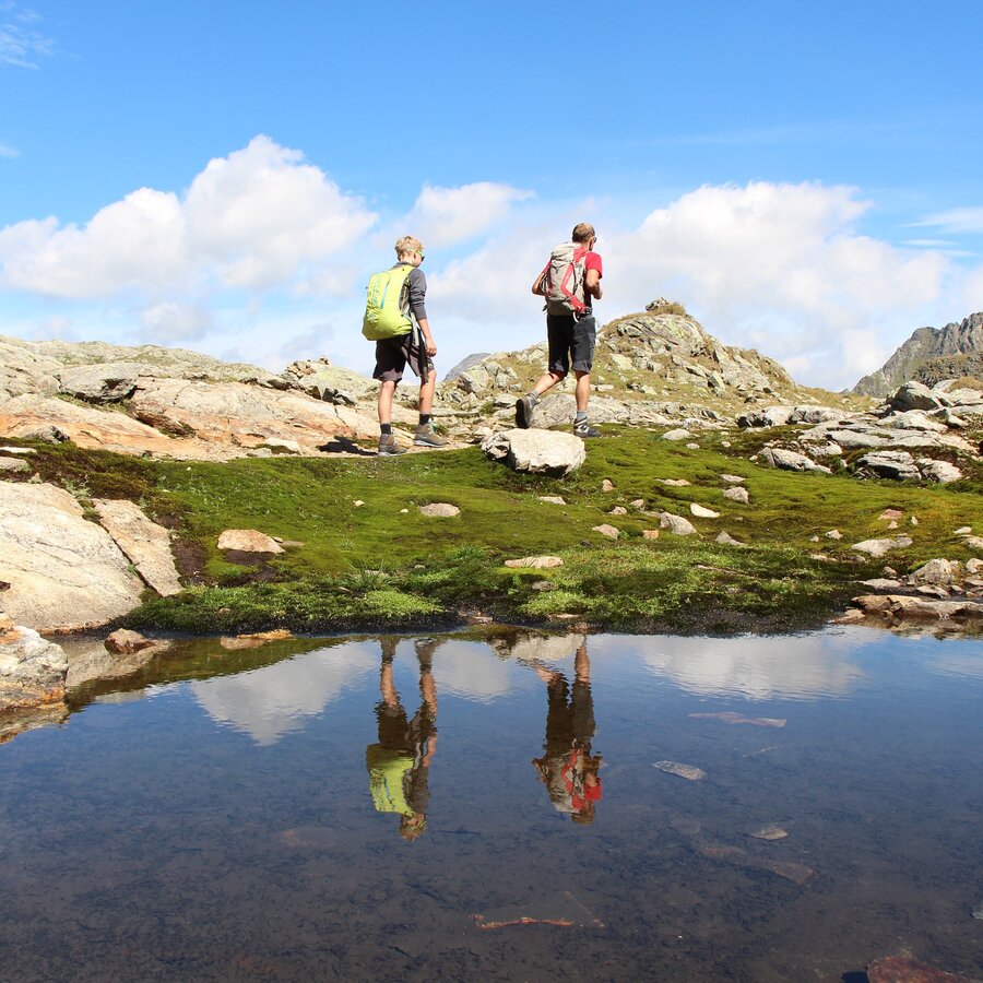 Changes in weather patterns, quick falls in temperature, thunderstorms, wind, fog and snow are some of the dangers that can be encountered on a hiking tour. Hosts of alpine huts and mountain refuges have a lot of experience in the mountains and can give good advice about weather and the trails. Poor equipment, overestimation of one's own capabilities, carelessness, poor personal constitution and/or wrong judgement can lead to critical situations. In case of thunderstorms: avoid summits, ridges and steel ropes.
