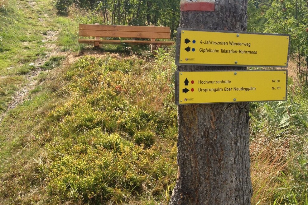 Hiking trail head, Gipfelbahn Hochwurzen valley terminal