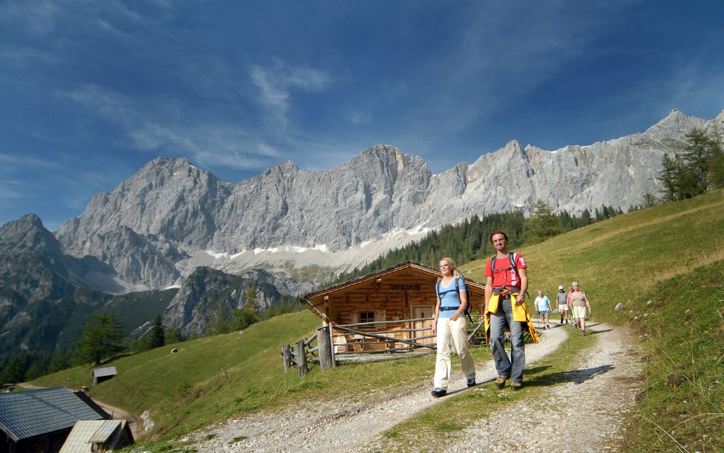 - To shorten the route follow the road downhill from the Gasthof Hunerkogel for just a bit to Hotel Dachstein. There, take a left on the hiking trail that leads you to Walcheralm.