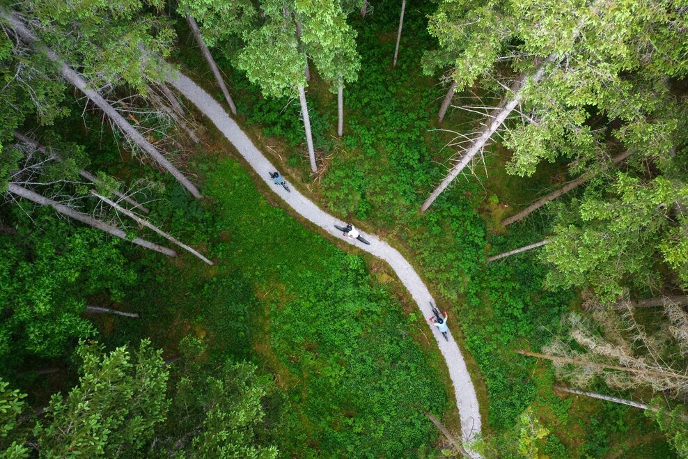 No mountain bike experience is necessary and children can also explore the paths through the larch forest.