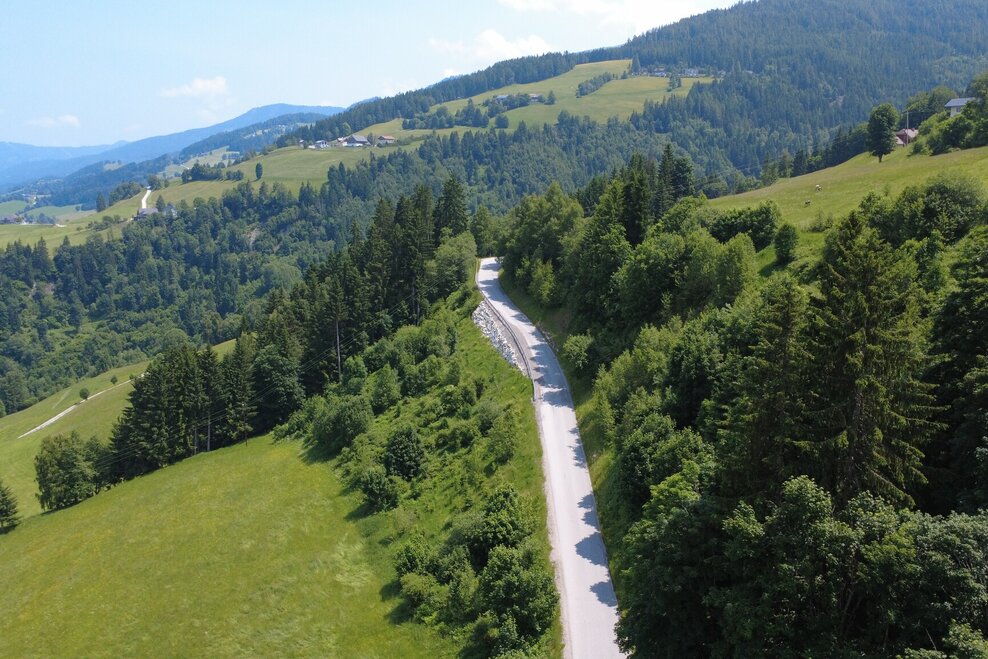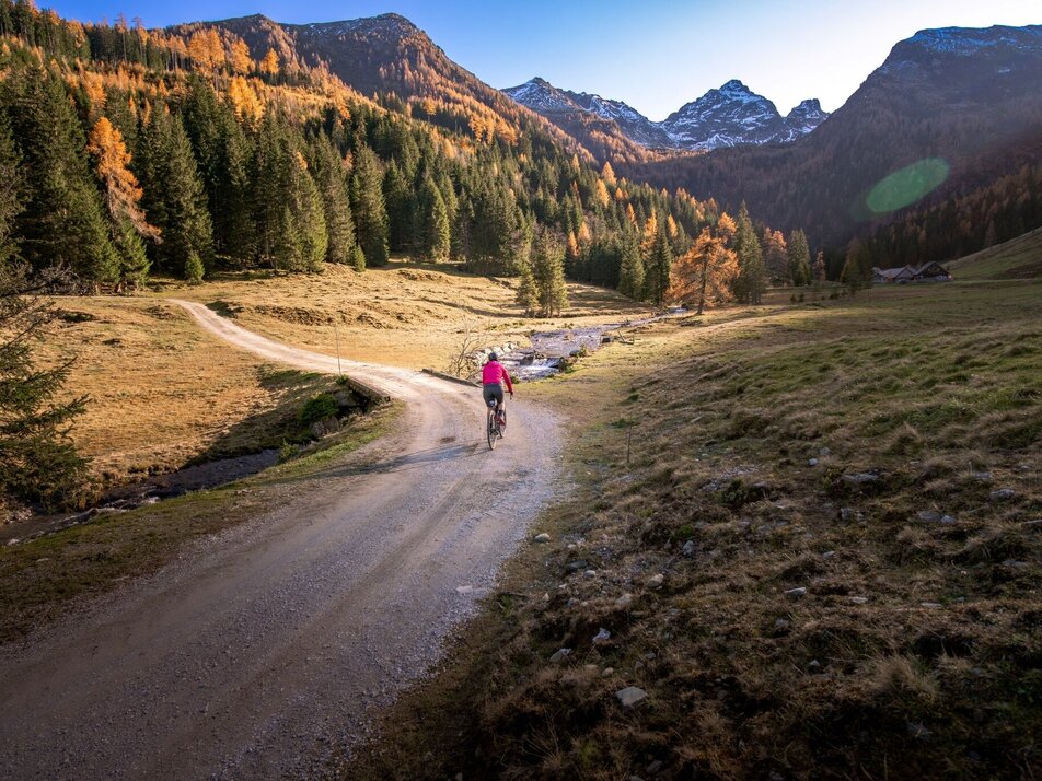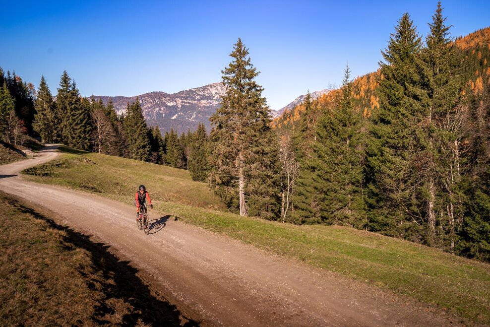 From the Bodensee, the route continues along the paved road to Gössenberg before climbing further towards the Galsterberg. Once at the top, enjoy the thrilling downhill ride to Pruggern.