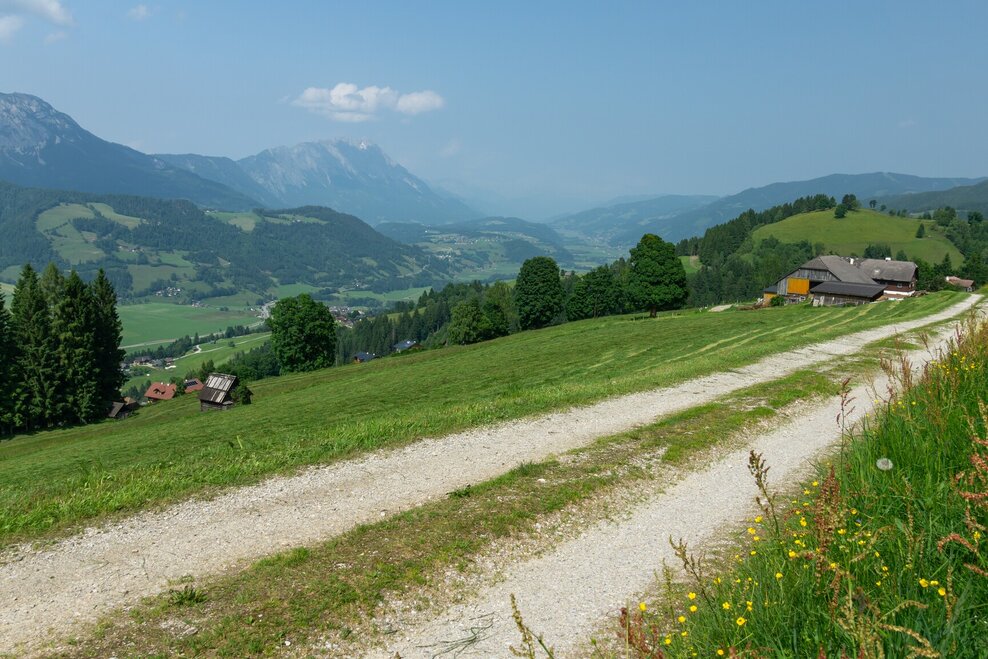 Starting at the village square in Aich, this tour heads across the Enns River towards Weissenbach, where the Jumper Trail awaits. This flowy, adrenaline-pumping trail has a 5 € fee, but is free to ride with the Sommercard.