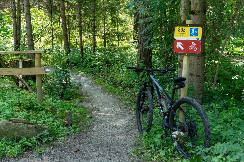 After the fun descent on the Jumper Trail, cross the Enns again towards Ruperting, where the climb up to Gumpenberg begins. This challenging ascent leads through the tranquil Gumpental and eventually reaches the picturesque Styrian Bodensee – a perfect spot for a refreshing break or a cool dip in the clear mountain waters.