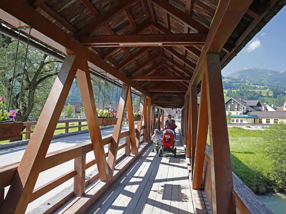 From the village square Aich go over the railroad crossing and then (still before the Enns bridge) immediately turn right. In eastern direction along the Enns into the so-called "Au". Continue to a wooden bridge over the Enns, cross it, go under the federal highway underpass and slightly uphill to the village of Assach. From there, return in a westerly direction to Aich.