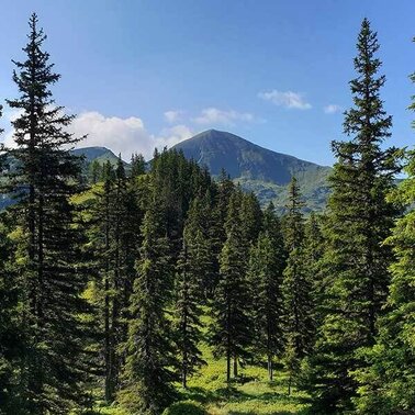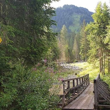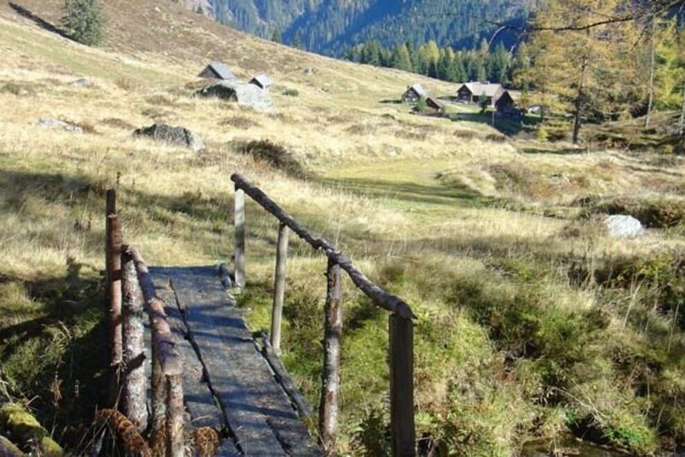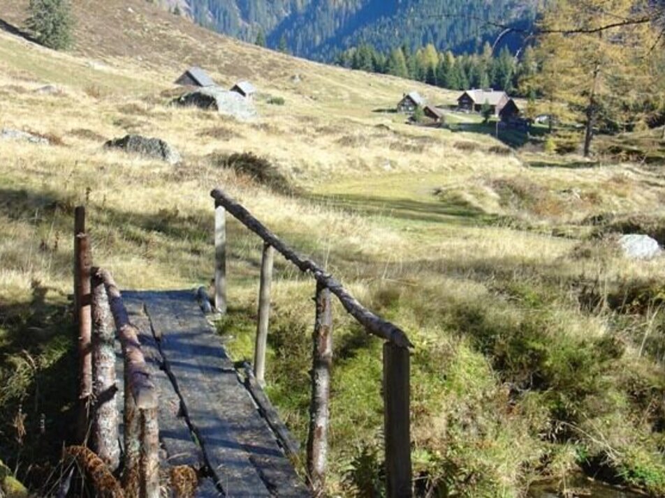 The road to the Upper Walchental is interesting, narrow and flanked by steep forested mountainsides on both sides of the stream, leading us to the former “In der Walchen” mining area and to two high valleys. Shortly after Gasthof Bergkreuz, ouor driving will be done. This is also the location of the Öblarn Copper Path, always interesting, especially when led by a local guide. Heading for the Englitztalalm: At the trail crossing, we turn right off the forestry road, hiking over a small bridge and then along a narrow forest path up to a broader pathway. Climbing moderately, this path takes us past the White Wall (former marble mine) and up a series of switchbacks, until we surprisingly find the flat alpine pastures of Englitztal Valley before us. A small stream, high pastures and the occasional ancient larch tree form the scenery on this valley bottom elev. 1,328 m, surrounded by steep forested mountainsides, while in the north, what is essentially the valley head, we see the striking figure of Hangofen summit. Just a little later and we reach the welcoming Englitztalhütte (crossing the bridge to the left will take us to Ramertal Valley). For families with kids there is a natural playground with a small stream, though this high valley is also perfectly suited for a pleasant walk along a flat pathway.