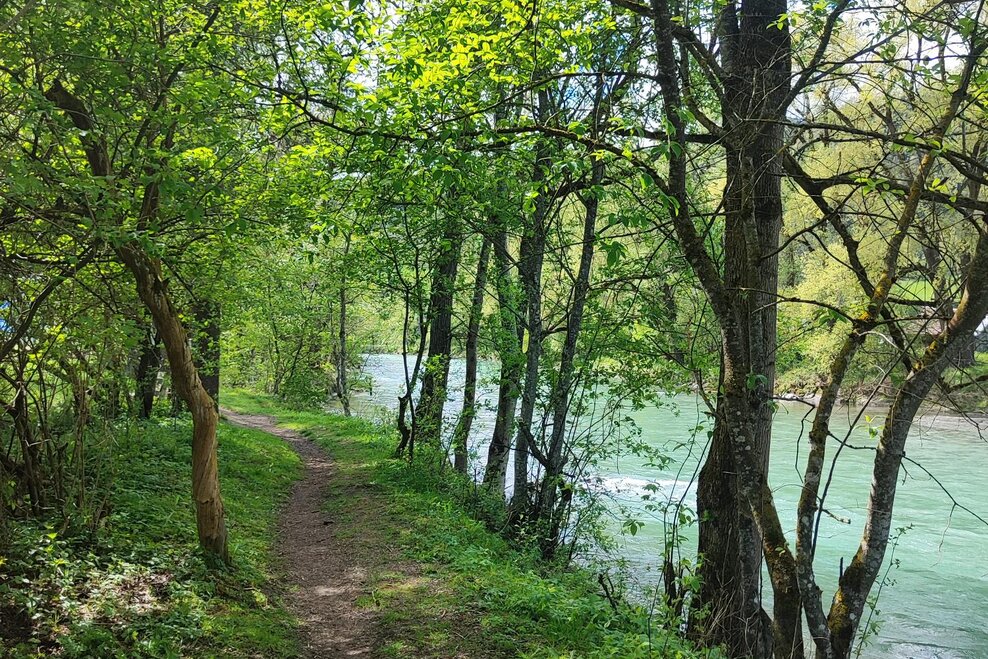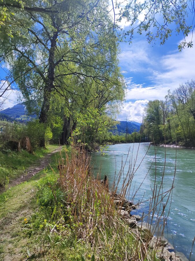Sonnberg road to the junction to the left - gravel road, downhill to the farm Murberger and downhill to Niederöblarner road - direction Öblarn, after 100 m turn right, cross the railway track and the country road, continue to Enns, upstream along the Ennsuferweg.