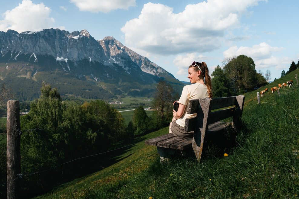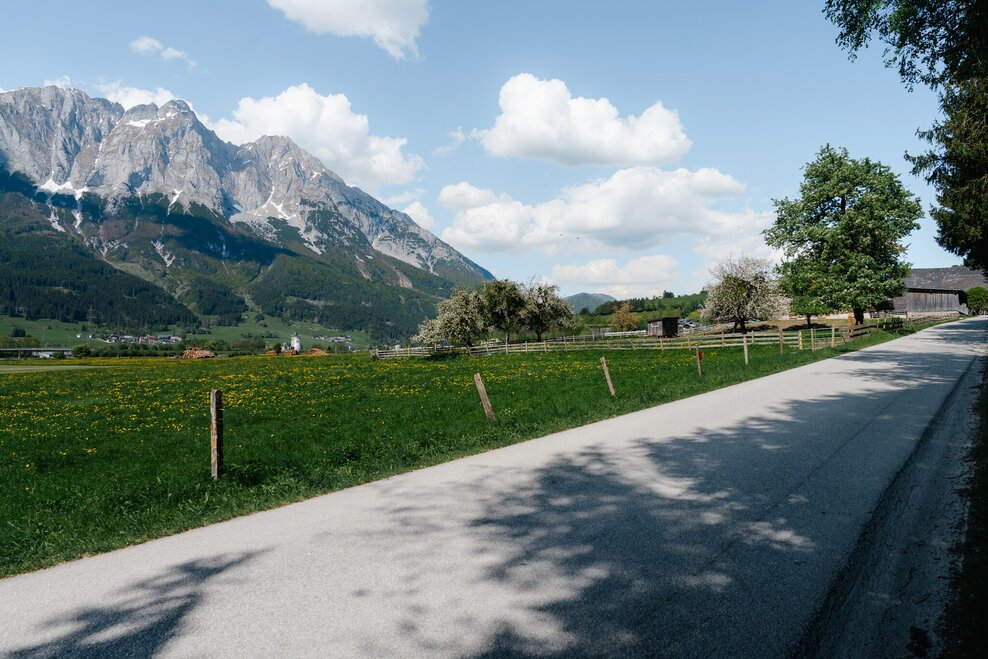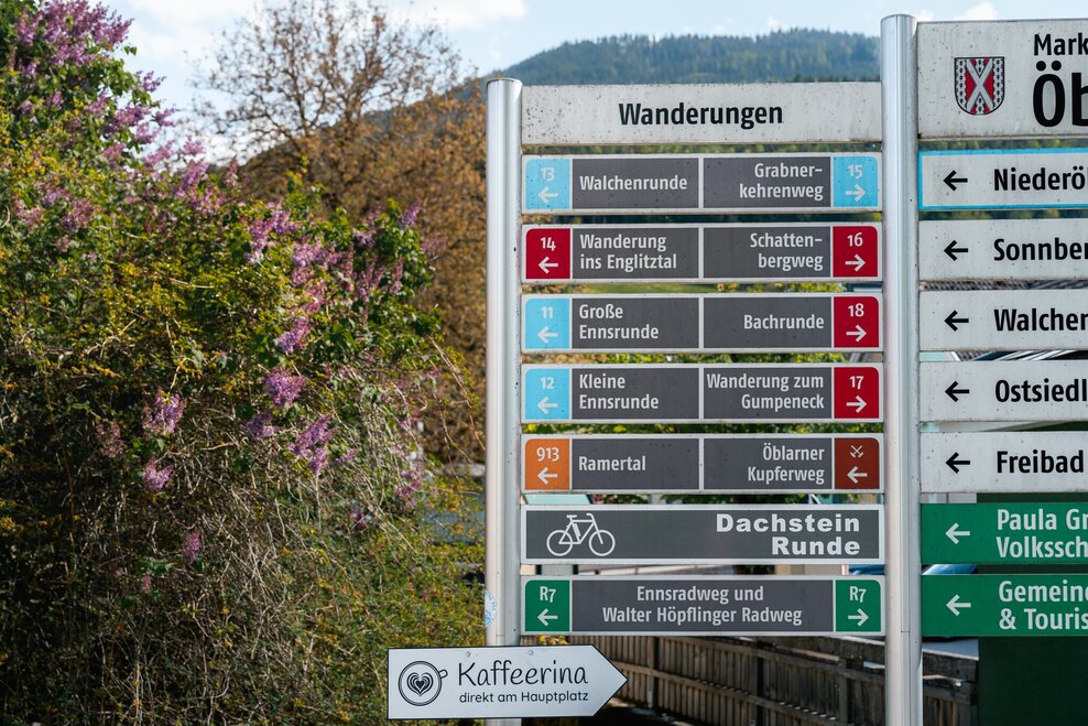 Starting point is the village of Öblarn, ascent via Sonnberg, further over the Moosberg in the direction of Niederöblarn, then you have the possibility to return to Öblarn via the Alte Landstraße or via the beautiful Ennswanderweg (hiking trail) past the Niederöblarn Alpine airfield.