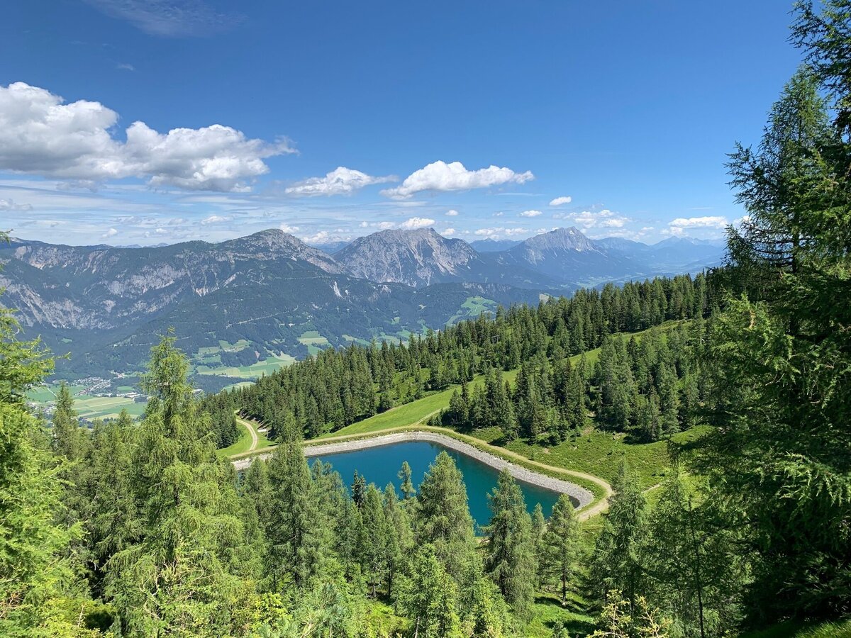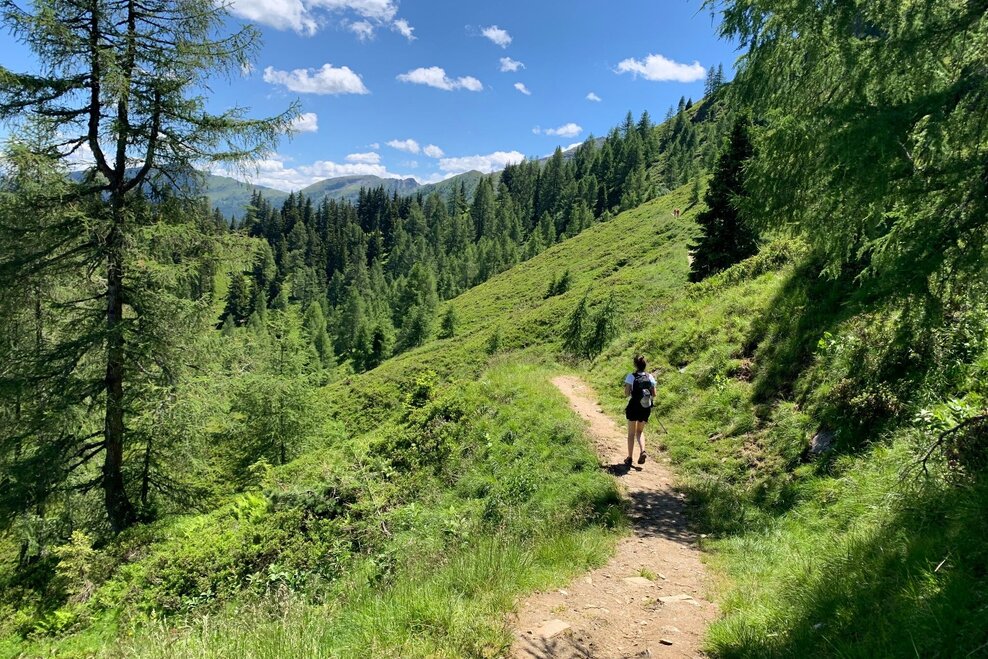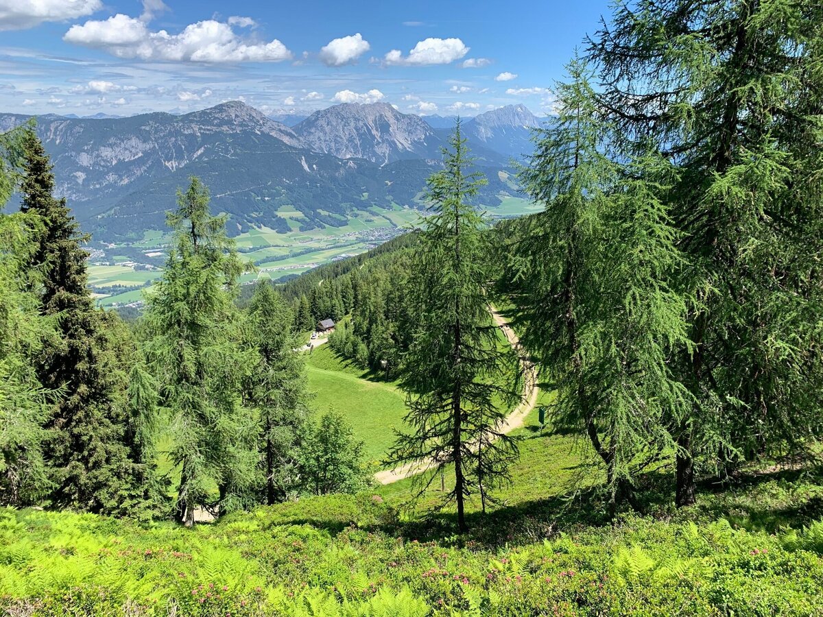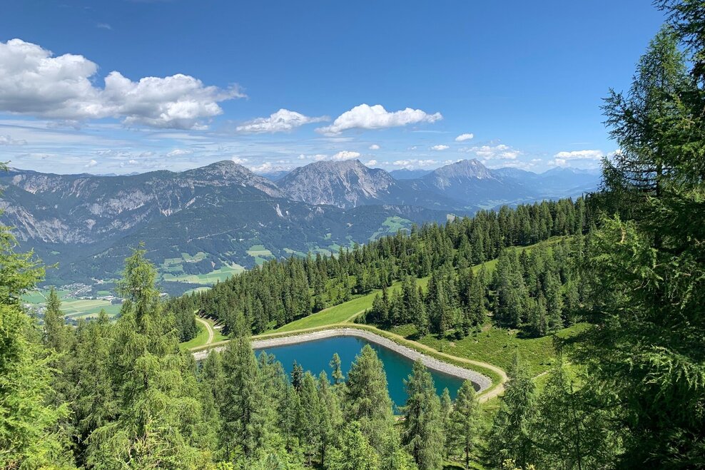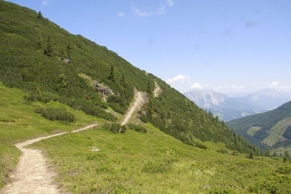 The great difference in altitude can be comfortably overcome with the Schladminger Tauern cable car or the Hauser Kaibling 8-seater gondola lift & the Kaiblinggrat 8-seater chairlift. A magnificent view over the entire upper Enns Valley awaits us. From the mountain station, we walk slightly uphill for a few minutes, where the Schafsinn circular trail branches off to the left at the TV station in an easterly direction. There we soon see the large “Schafbox”, the actual starting point of the circular trail. This is signposted throughout and then leads slightly up and down in a clockwise direction around the Hauser Kaibling to the Rossfeldsattel. From there, the trail descends gently to the Kaiblingalm. This is easily accessible for families with baby carriages from the other side via the forest path, which also takes you back to the cable car mountain station.