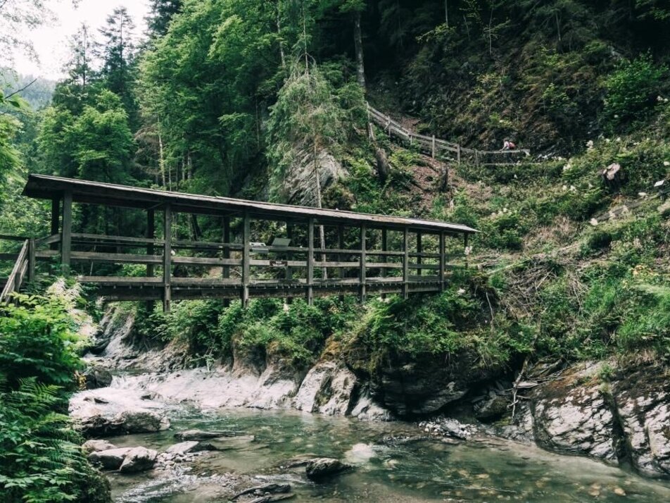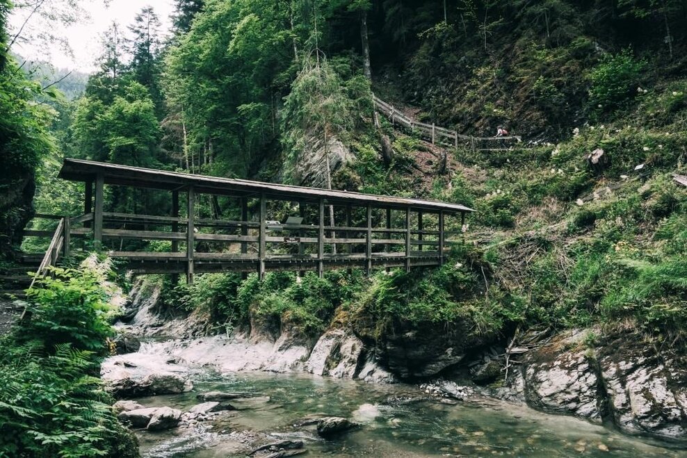 A glance upwards is enough to see the lichens glowing yellow from the rock. Continue to the footbridge, up and down the steps, until you reach the Klammsteigruhe. Be sure to pause here before going uphill again after the "tunnel". At the top of the clearing, there is a bench for a rest. Follow the signposts back through forest and meadow to the road. Once you have crossed the road, follow the forest path back to the starting point. Let your soul dangle on the flat stretch of the forest path, take a look at the mountain farms across the road, look back on the distance you have covered and simply enjoy yourself! Makes sense.