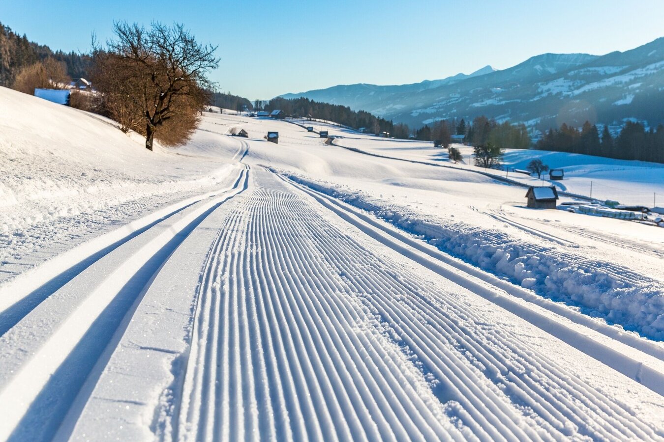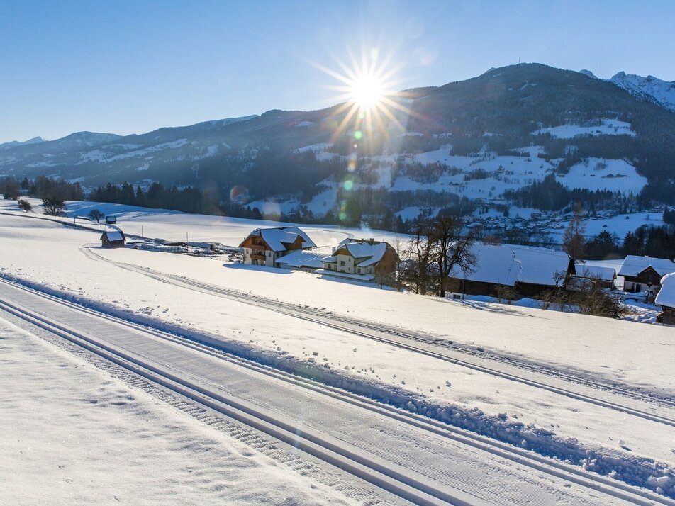 Starting from the Grundnerhof on the Birnberg in an easterly direction to the turnaround loop near the Pircher/Forsterhof. From there back towards the center of the village. Continue behind the farms to Birnberg West. Here, too, return to the village of Birnberg via the reversal loop. - IMPORTANT: Cross-country skiing only possible with sufficient natural snow!