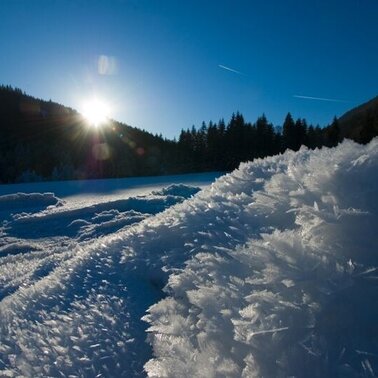 The village cross-country ski trail Haus - Aich can be started in both villages. In Haus im Ennstal it is best to start near the Haus im Ennstal outdoor swimming pool. In Aich near the inn GrafenWirt or the hotel "Bärenwirt". From the respective entry points, simply follow the course of the trails and the signs. Between the cross-country ski trails in the Weißenbach area, a small section must be covered on foot through the "Lärchschachen". Also in other sections it may be necessary to "master" a few meters on foot. IMPORTANT: The trails are only groomed when there is sufficient natural snow!