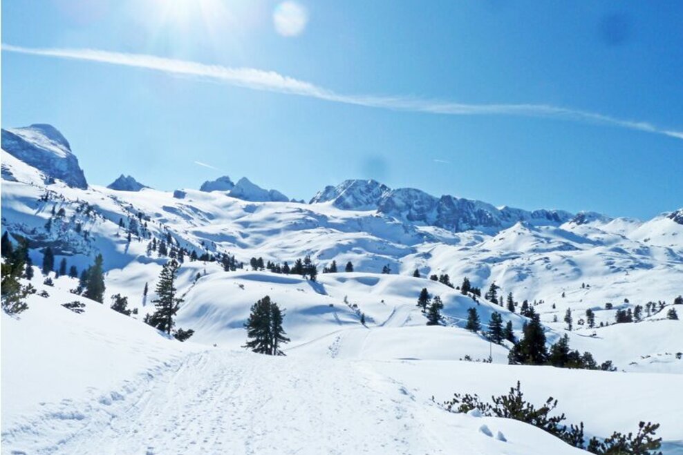 “The roof of Styria” is calling you! Austria's national ski tour is the most spectacular way to experience the UNESCO World Natural and Cultural Heritage Site of the Dachstein. The classic ski crossing of the Dachstein massif from south to north - a nationally renowned, technically easy ski tour. Touring skis are not absolutely necessary, the crossing is groomed throughout and can also be done with normal alpine skis. From Ramsau/Dachstein, the route leads over the Hallstätter Glacier past the Simonyhütte to the Gjaidalm below the Krippenstein. From there, one of the longest groomed ski runs in Austria takes you down to Obertraun on Lake Hallstatt.