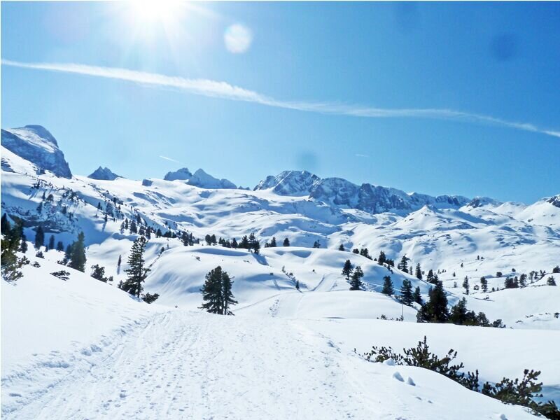 Variant: Many variants can be incorporated into this ski tour (for which touring equipment is required). For example, a descent to the Eissee and the short ascent to the Simonyhütte are possible. The ascent to Hoher Trog and the descent through the wild Weittal valley to Hallstatt is somewhat longer. Also popular is the detour to the Wiesberghaus and the Tiergarten descent, which leads through the Echerntal valley to Hallstatt.