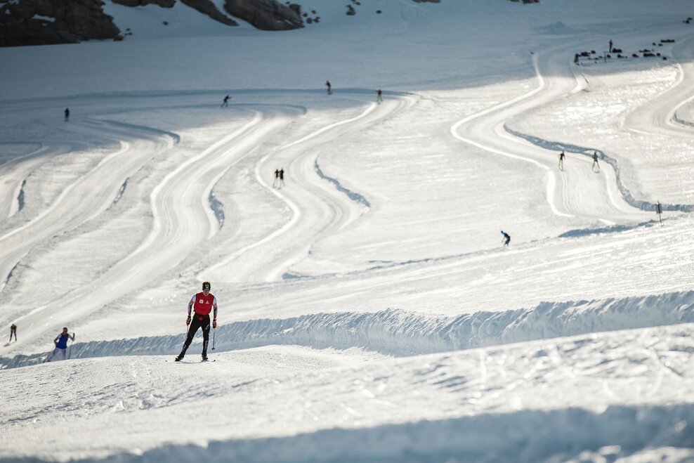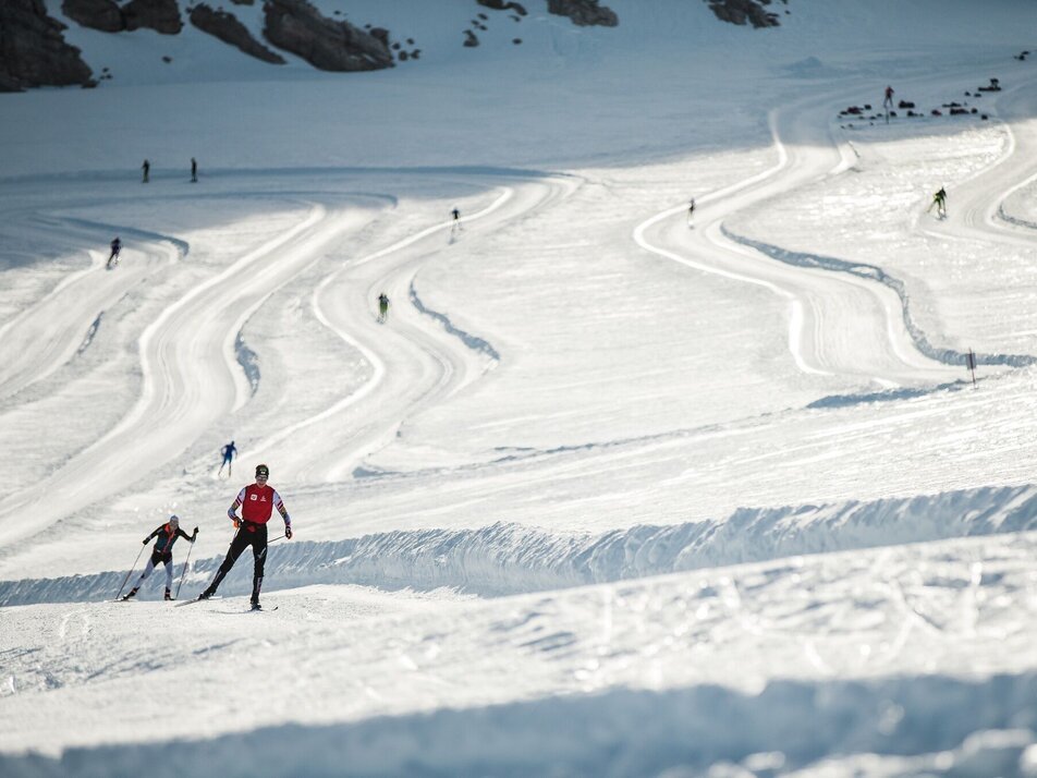From the mountain station of the Dachstein cable car you go up the metal stairs to the start of the groomed hiking trail and from there slowly descend in the direction of the Gjaidsteinsattel. Please be considerate of the hikers next to you in this area. To the left of the saddle, you continue to the start of the cross-country ski loops of the Hallstatt cross-country ski run, which run back and forth across the glacier between the Kleiner Gjaidstein and the Eisstein. Have fun!