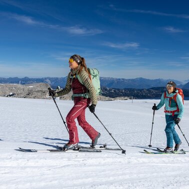 The Hallstatt trail is the longer of the two high-alpine glacier trails on the Dachstein Glacier and offers you glacier cross-country skiing with a view.