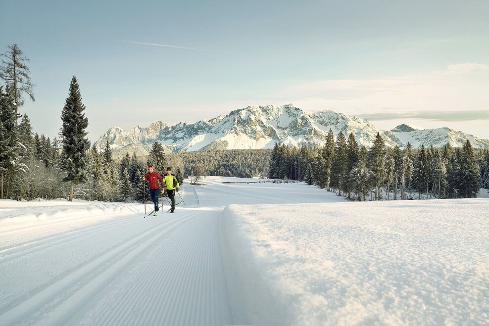 The Dachstein circuit is a challenging route for the hobby cross-country skier for a classic or skating "30s". The route leads through all districts of Ramsau and impresses with beautiful vantage points into the Dachstein massif and the Schladminger Tauern.