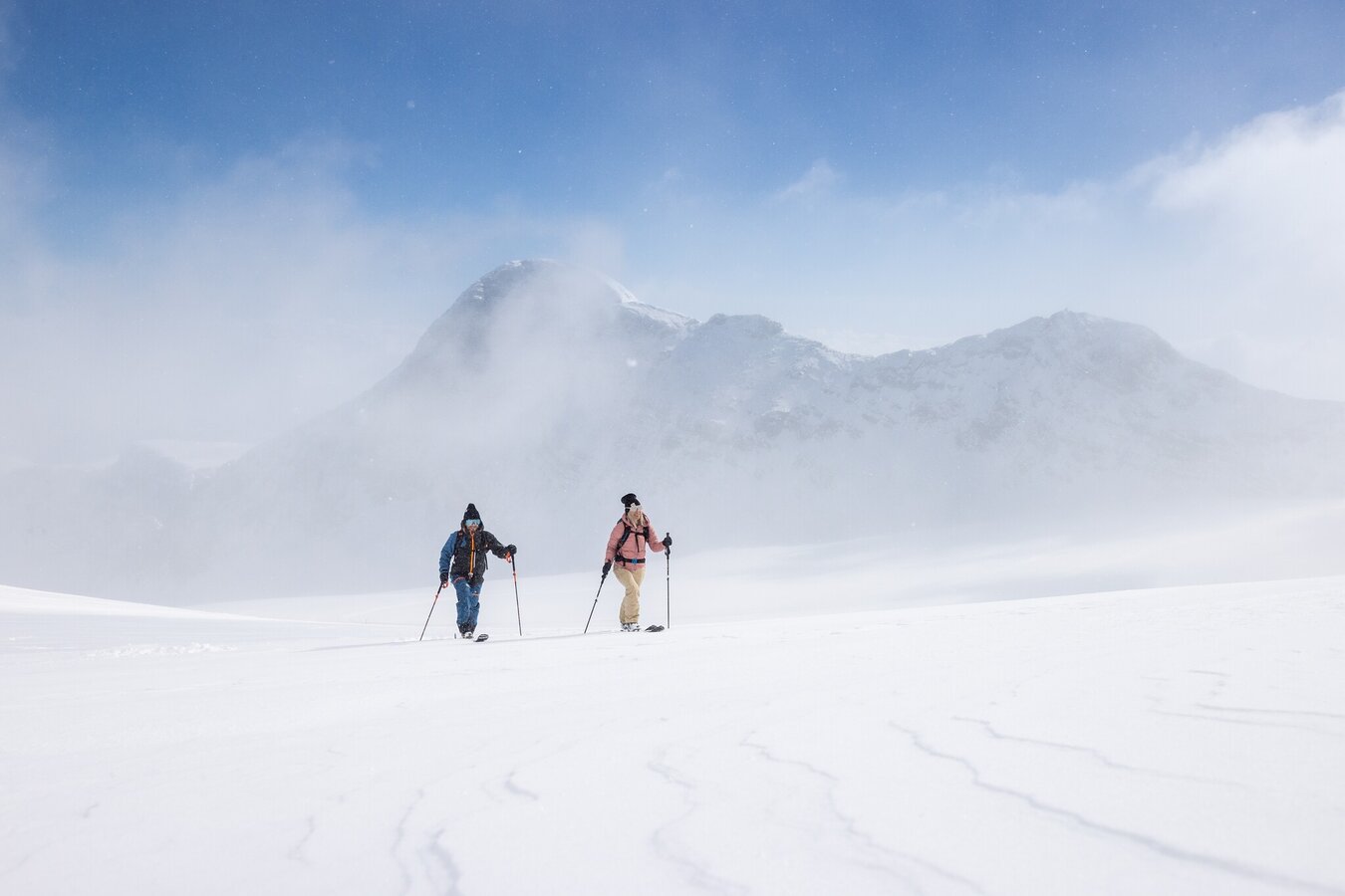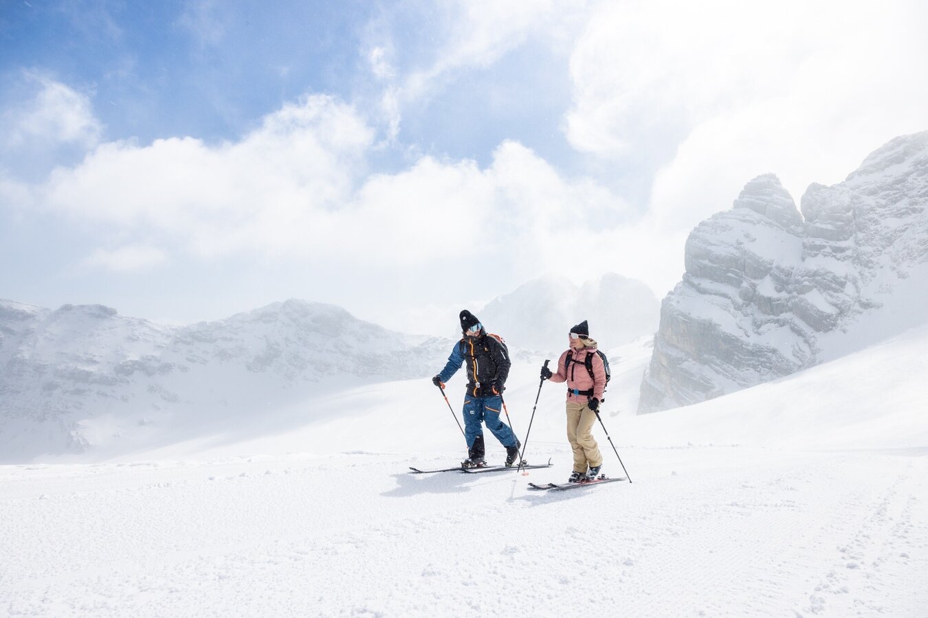 The Dirndl Tour is located above the tree line. Most of the Dachstein glacier faces north-east or north and is susceptible to rapid changes in the weather. Another major issue is rapidly falling or long-lasting fog, which can cause temperatures to plummet. Please inform yourself well before the tour about the weather development and snow conditions and carry sufficient protective equipment.