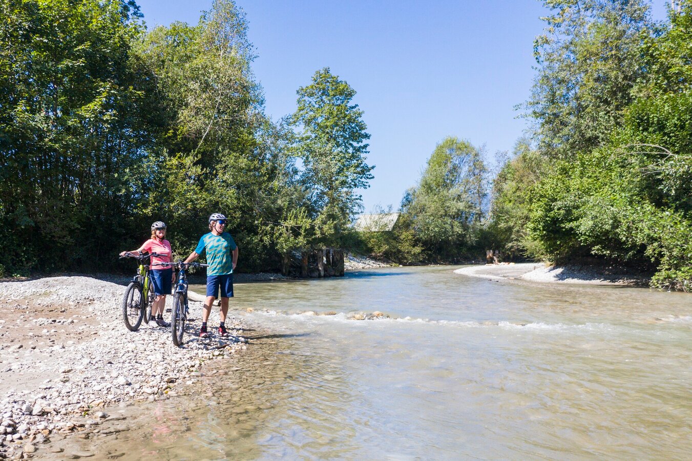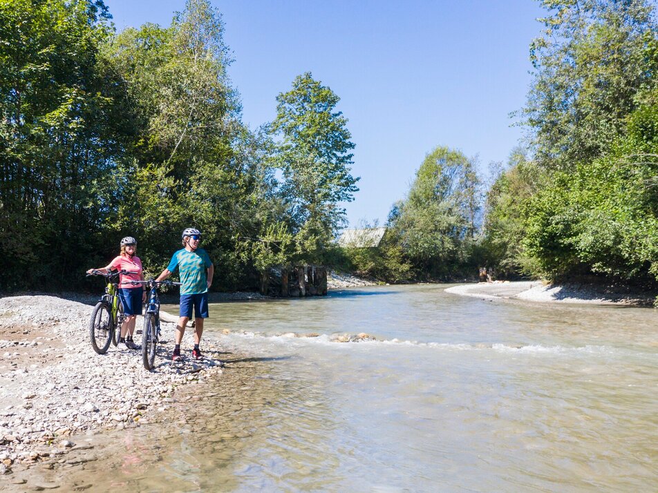 On the road with children: the trip is only recommended to a limited extent, as in the Gesäuse National Park and partly also in the Kalkalpen National Park the route leads partly on the road and some stages also have gradients. However, if you are travelling with children, you will notice the "piggyback transport" through the Gesäuse: Up to 5 bicycles can be transported on all ÖBB Postbus courses on lines 910 and 912 with the bicycle symbol or with the note "Bicycle transport limited possible". The tariff is independent of distance and amounts to € 3.10 per bike. Children's bicycles are free. For information and reservations please call +43 810 222 333 (daily from 6 a.m. to 10 p.m.). You can download the timetables here: Line 910 and line 912. Another possibility for the route St. Gallen - Mooshöhe is the bike transfer of the Gasthof Hensle, more information under Tel. +43 3632 7171.