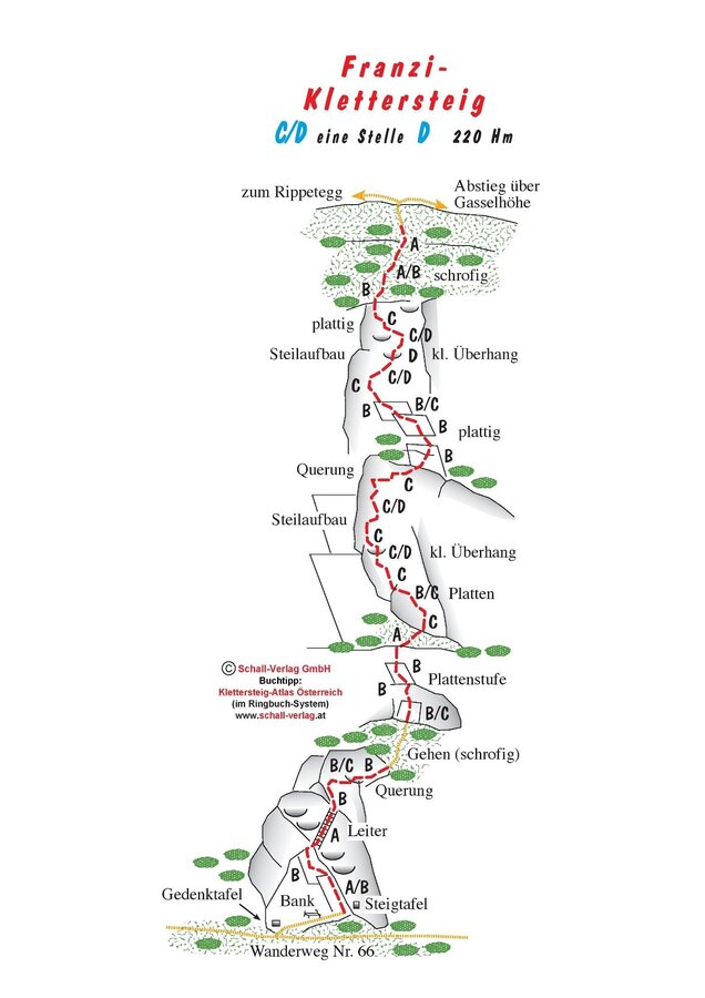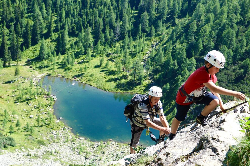 The Franz Klettersteig on the Reiteralm is the first via ferrata in the Schladminger Tauern. It is a via ferrata with several variants and a sporty route through the vertical Gasselwand between the existing hiking paths of the Reiteralm Rundwanderweg. It shouldn't be underestimated; The toughest passagae is in the upper section and demands major reliance on the steel cable. Good in combination with a hike to the top of the Rippetegg, with unique scenersy including constant views of the Dachstein massif.
