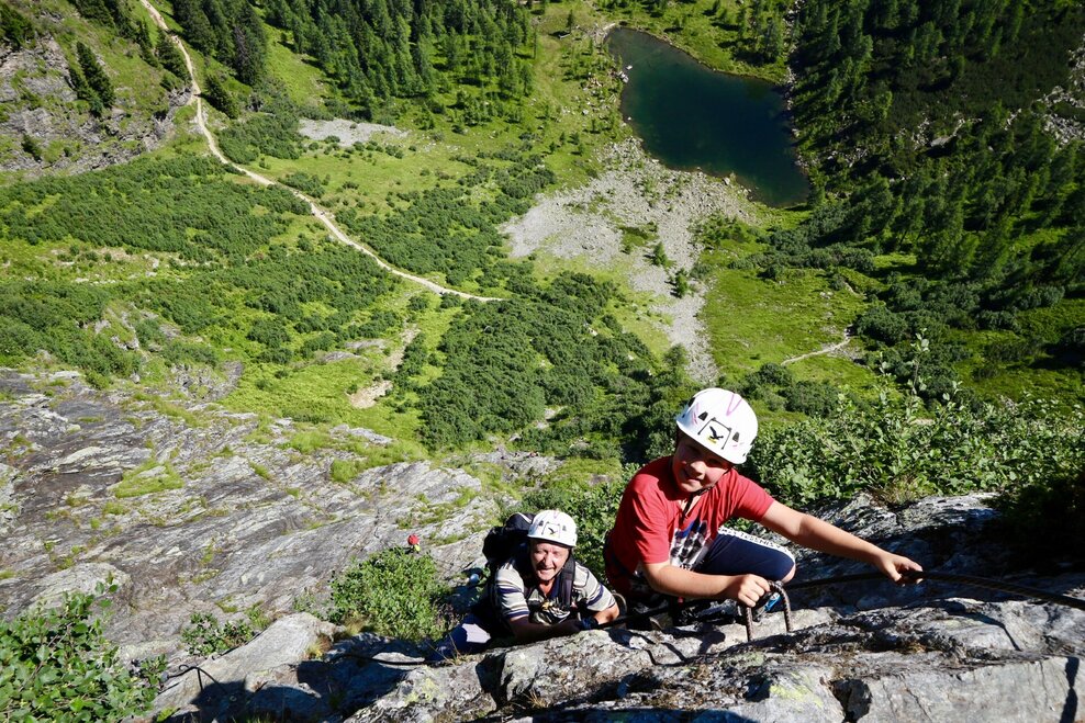 The ferrata is NOT recommended for beginners, as it usually is moist/wet and therefore adds additional difficulty to the route!