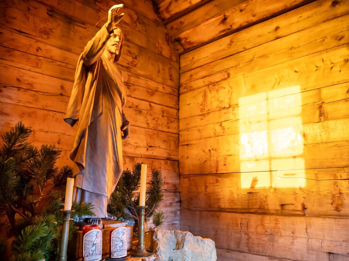 The path to the Friedenskircherl leads over gravelly limestone and is somewhat exposed in parts, with railings installed at the steepest points in summer.