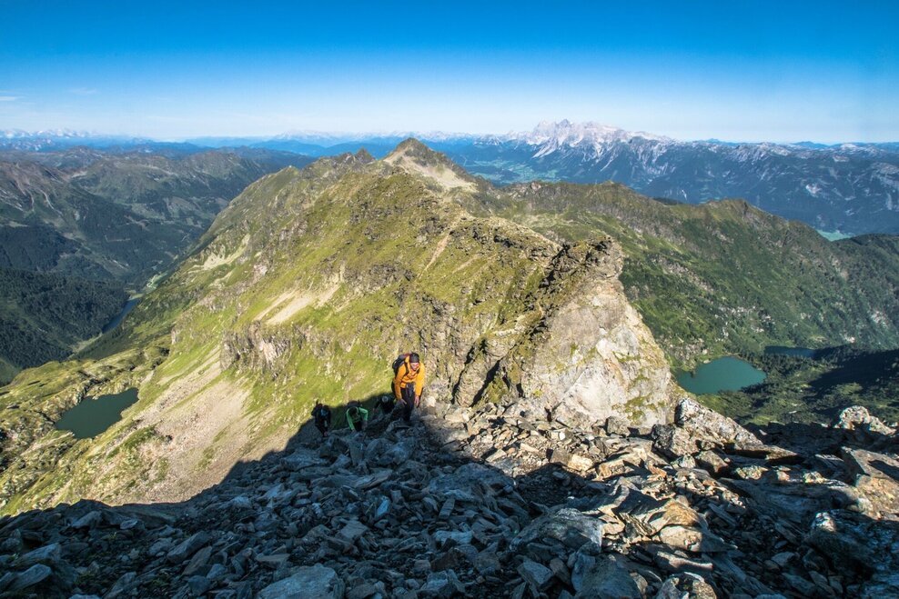 Once you reach Neualmscharte gap the high-alpine part of the tour begins. Along the edge and via "Kleine Wildstelle" (2,577 m) you hike and climb to the summit of Hochwildstelle (2,747 m). Hochwildstelle is the highest mountain entirely located in the federal state of Styria. The view is breathtaking!