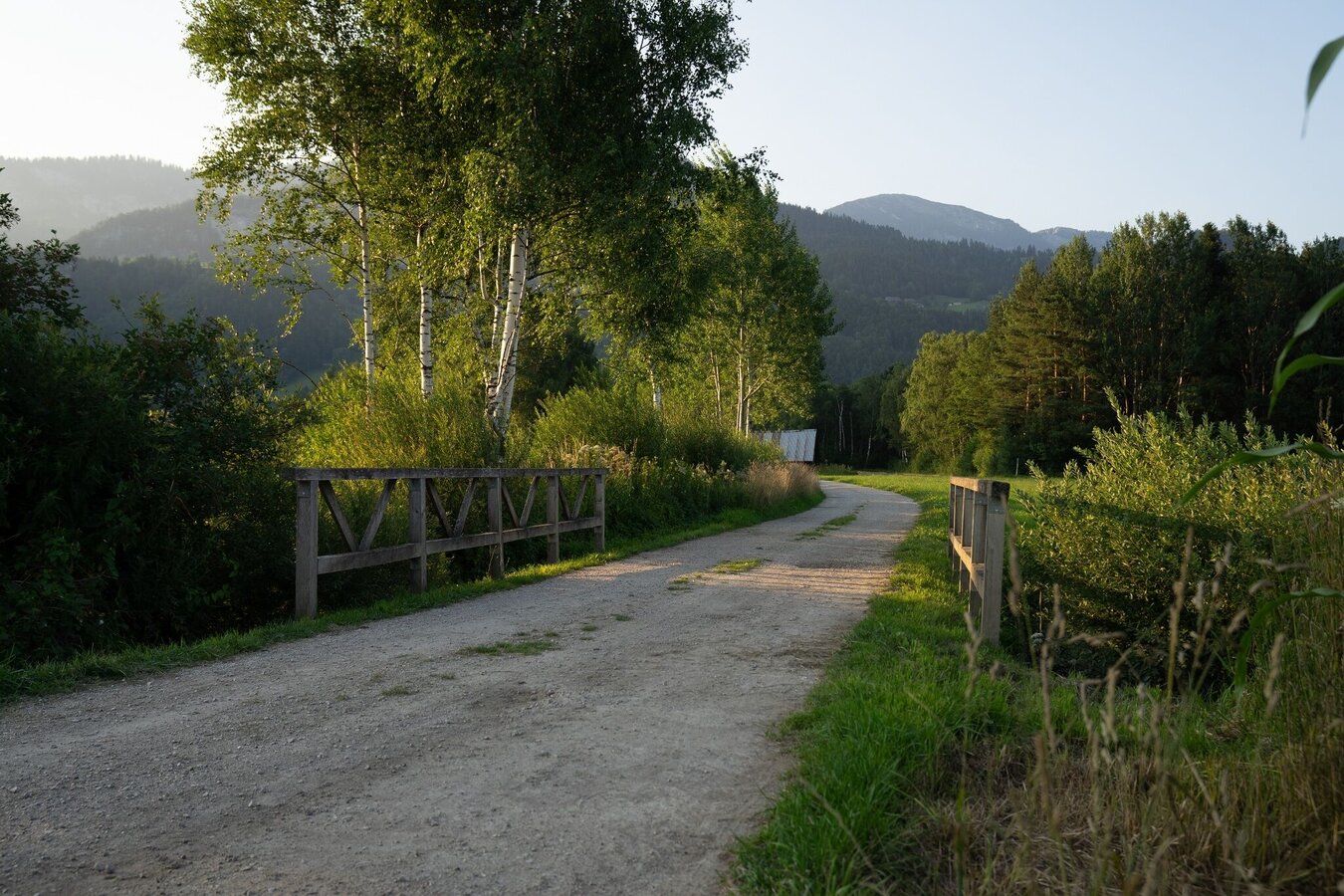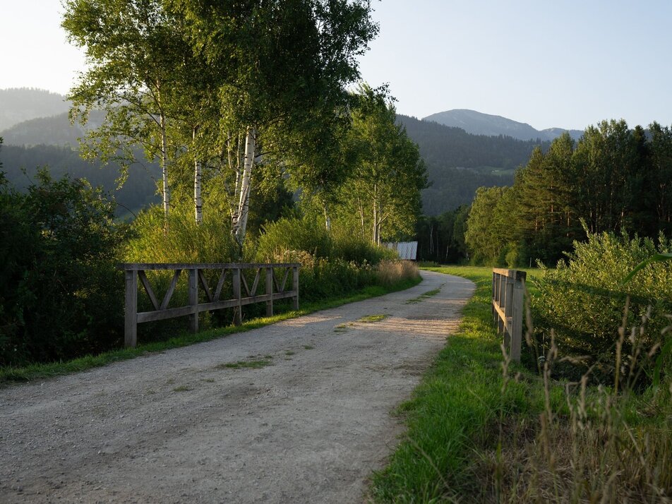 From the Irdning leisure center, continue along the Enns to the Sallaberg bridge. Turn left and continue to Stainach. Via Ennsstraße past the soccer pitch and fish pond, you reach the B320 underpass, cross the railroad and main road and reach Niederhofen. This is where the gentle climb to Schloss Friedstein begins, and where the first Natur.Kraft.Platz - Schlossplatz - awaits you.