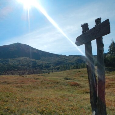 From the Gumpenalm, follow the hiking trail to the Gumpeneck as far as station 14, then turn left towards Gumpenkar and hike back towards the Gumpenalm.